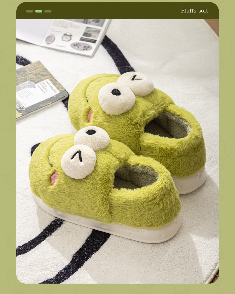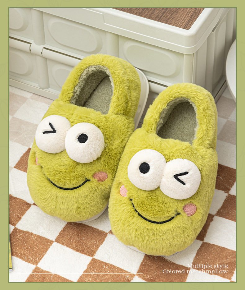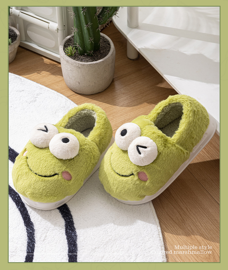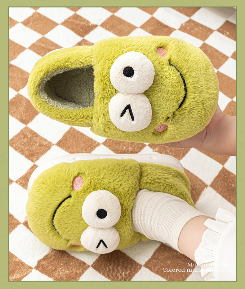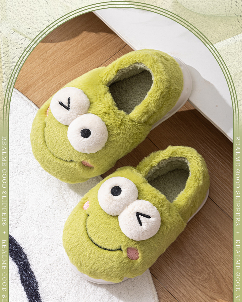 frog-shaped wallet heel cotton slippers women's autumn and winter indoor home non-slip keep warm outerwear 2024 new cotton slippers women's autumn and winter 中文版