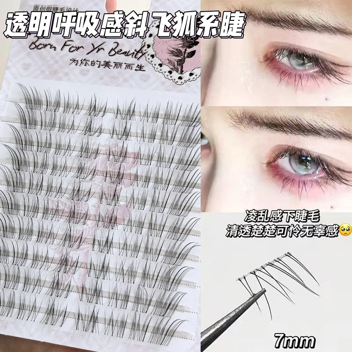 breathing transparent oblique false eyelashes extremely thin messy simulation wild natural cartoon fairy grafting same style 中文版