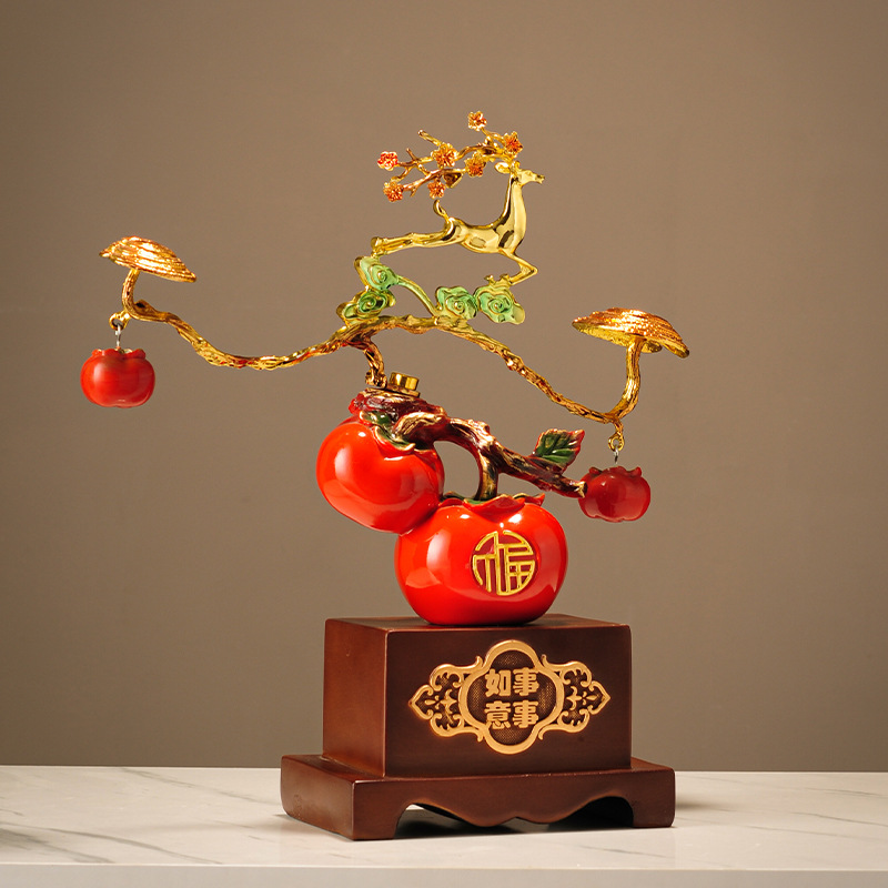 lucky persimmon lucky tree (golden) + deer pair