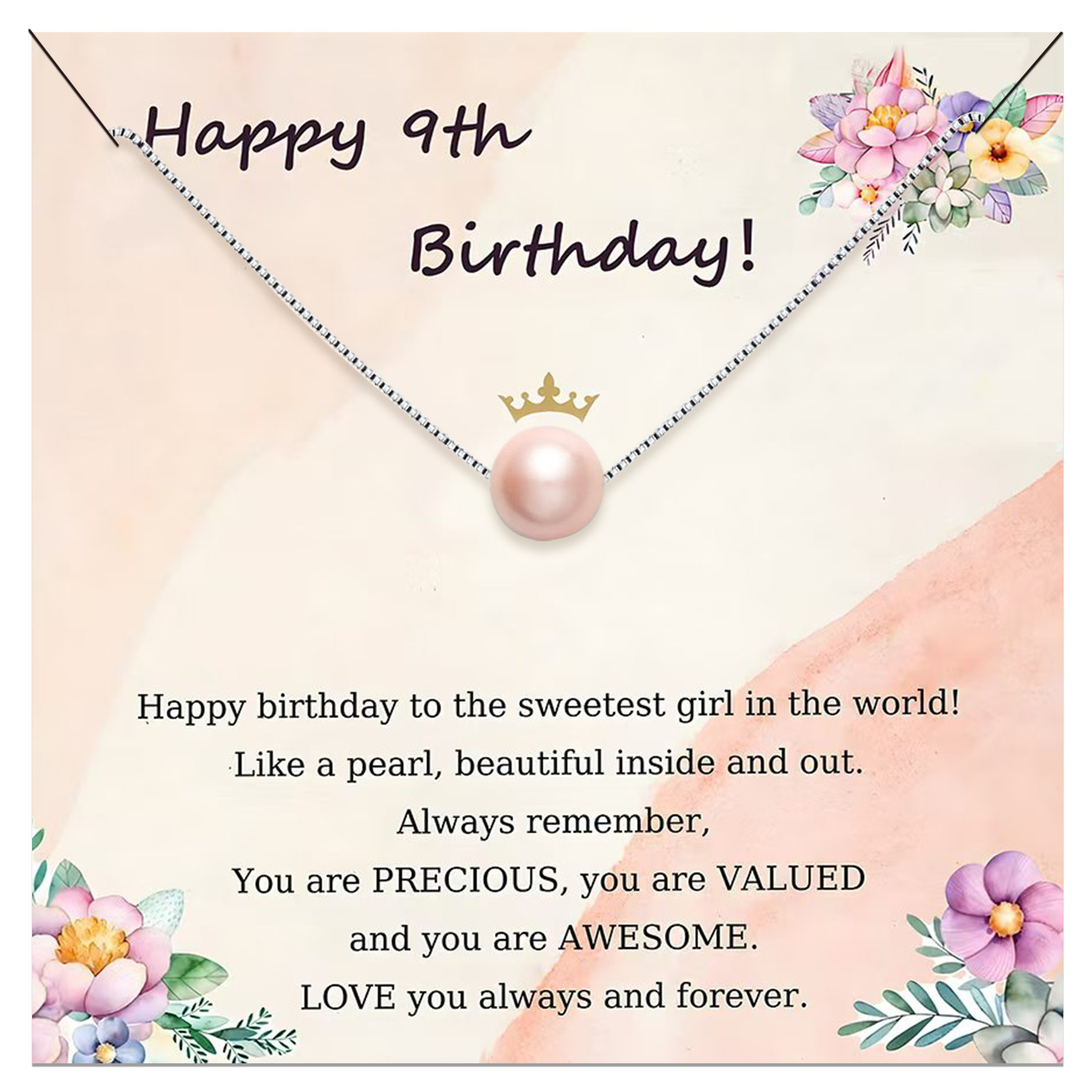 blue pink pearl necklace +40th card