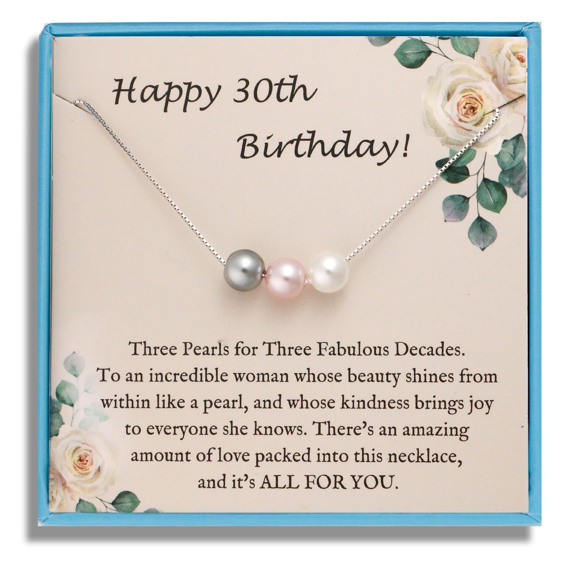 pink, white and gray pearl necklace +30th card