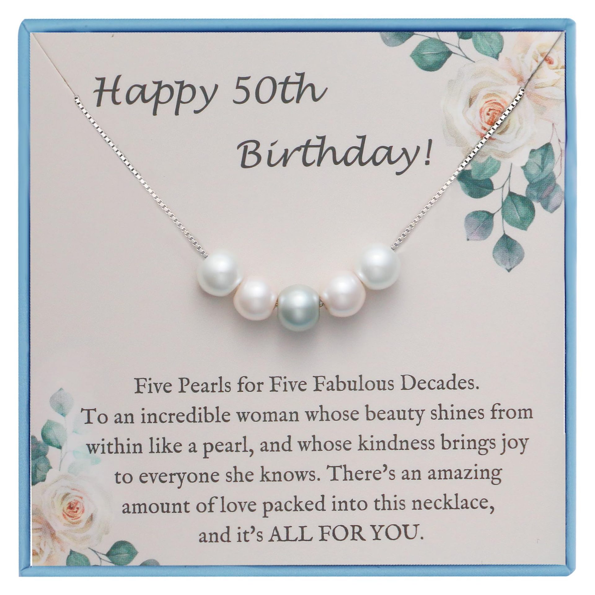 pink white blue three-color pearl necklace +50th card