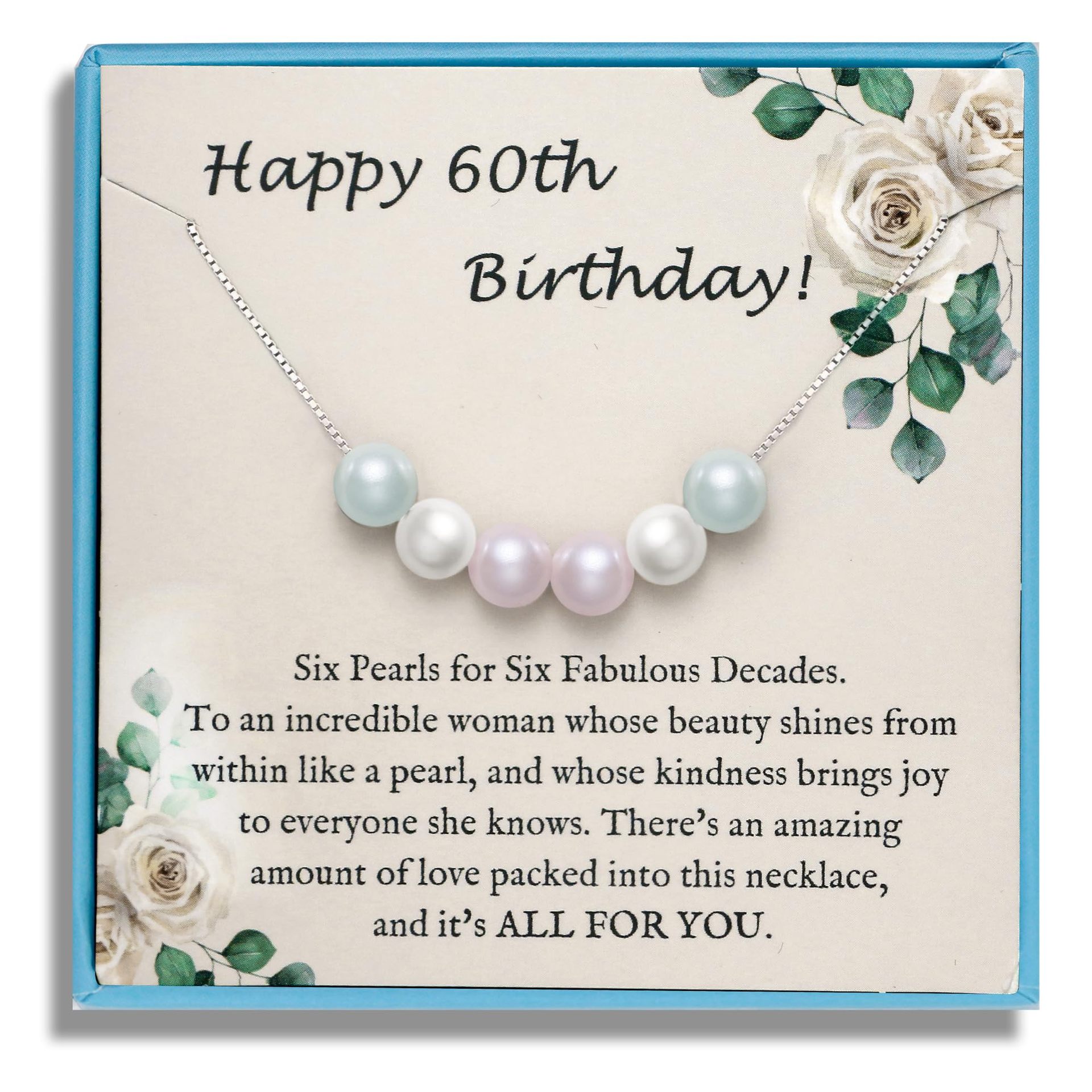 pink white blue three-color pearl necklace +60th card