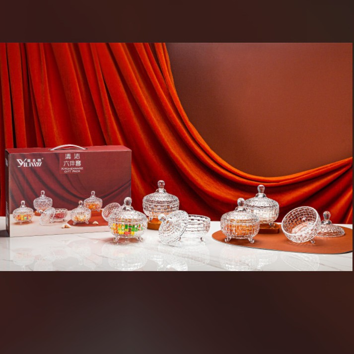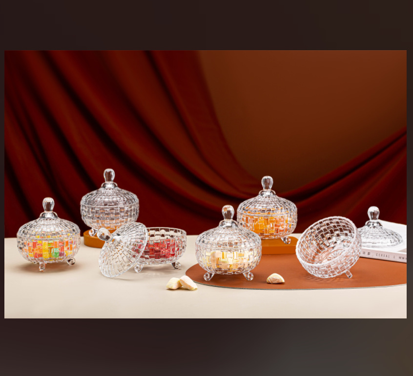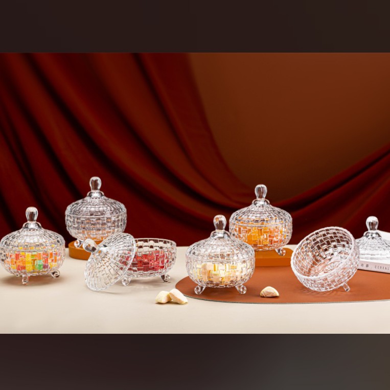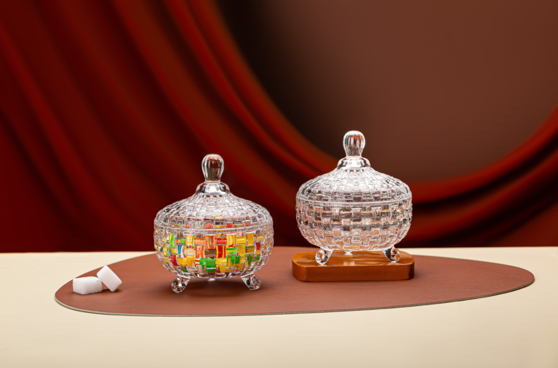 A glass candy jar is a beautiful and practical household item that is suitable for various occasions and uses. The two-piece candy jar is made of high-quality glass material, which has good transparency and luster. It can clearly display the color and shape of the candy, and the glass material is also easy to clean and maintain. Whether it is for candy or fresh fruits, it is clean and transparent.