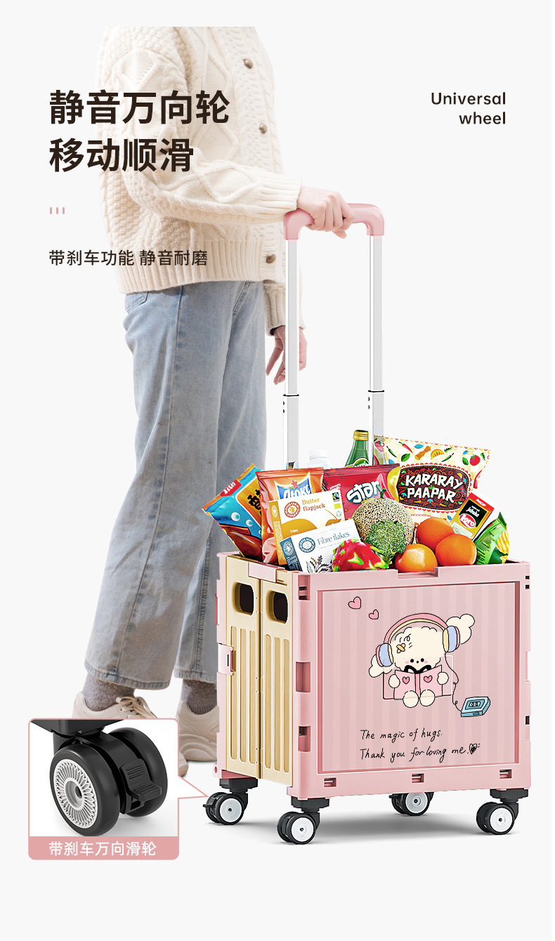 pink curly puppy folding shopping cart