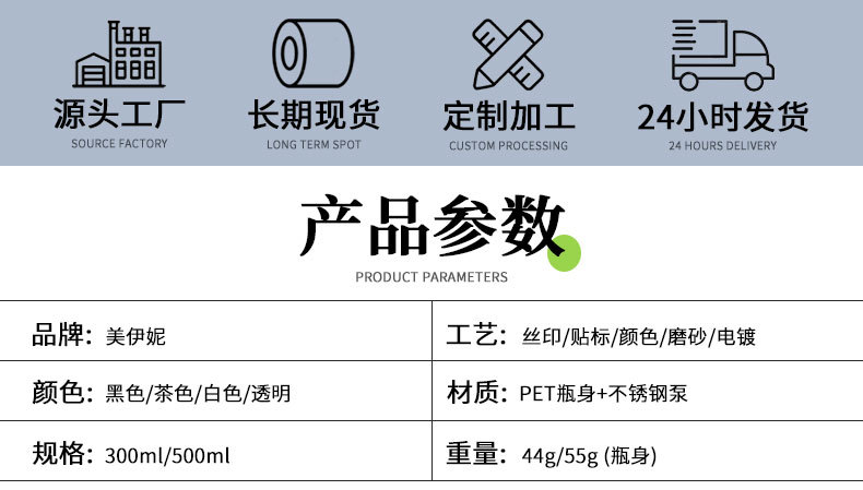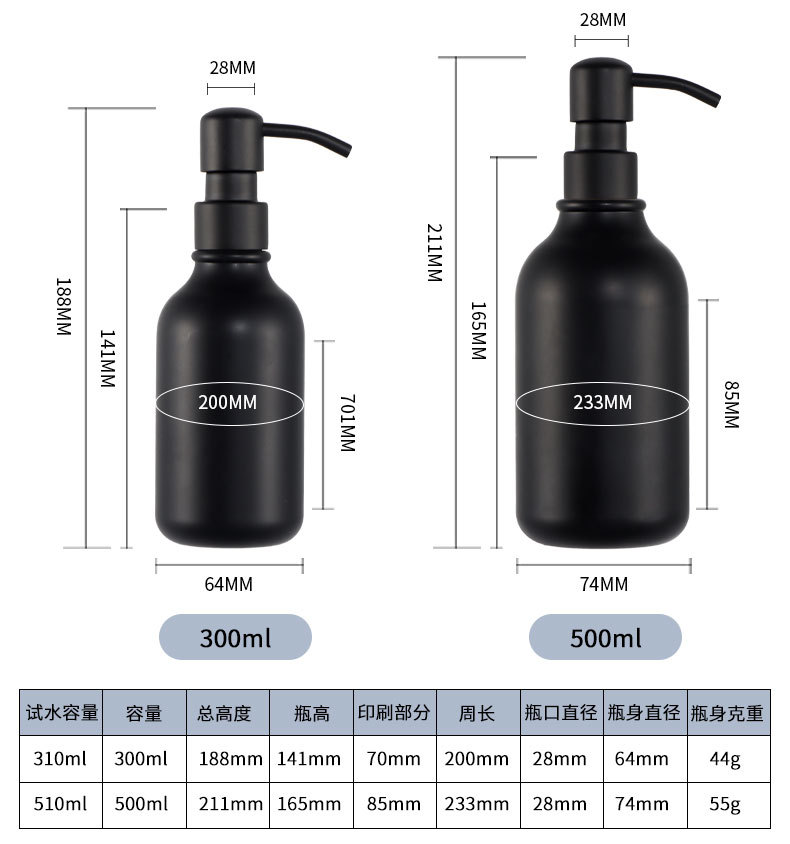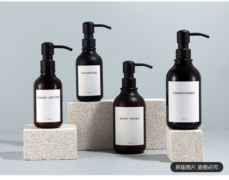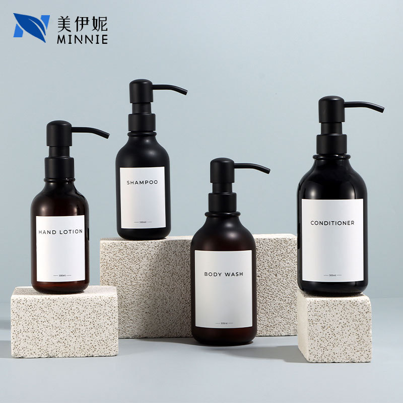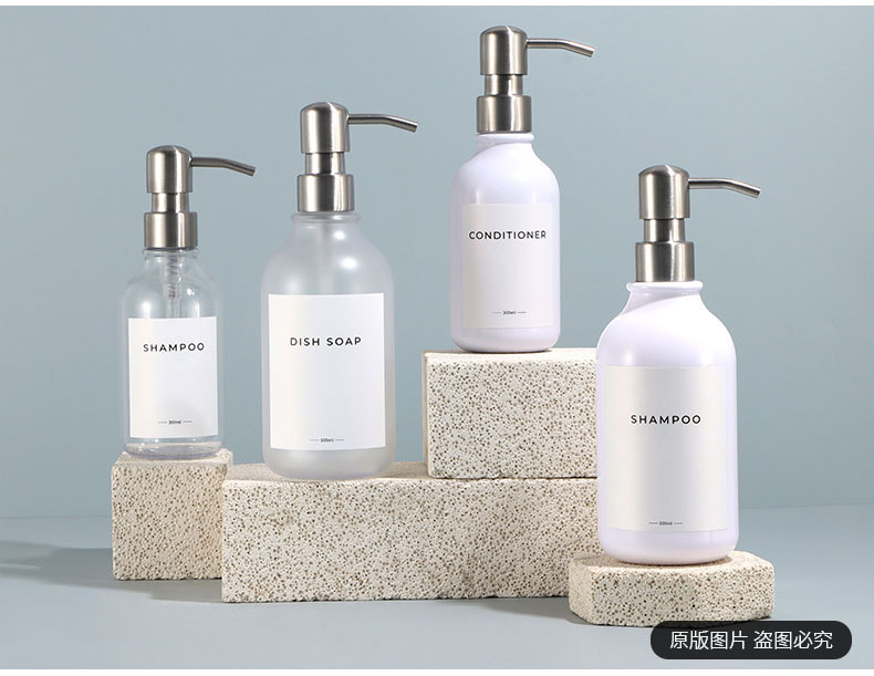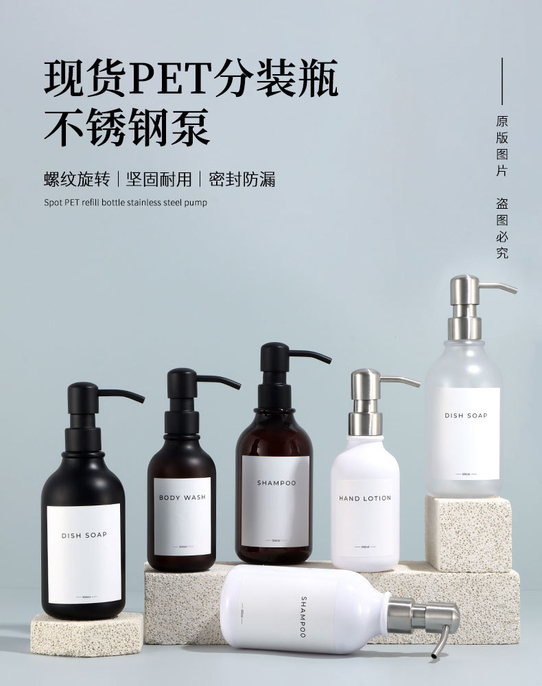 500ml hand sanitizer plastic bottle with stainless steel pump, empty bottle with sandblasted finish, 300ml shampoo stock packaging