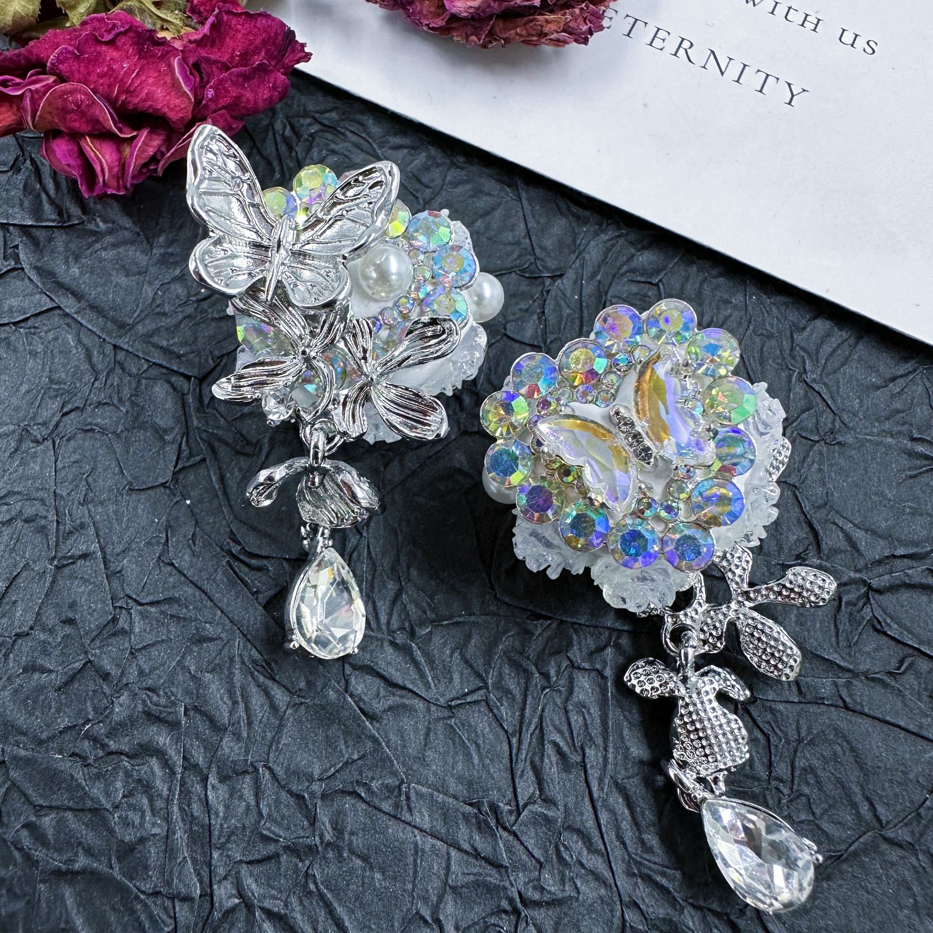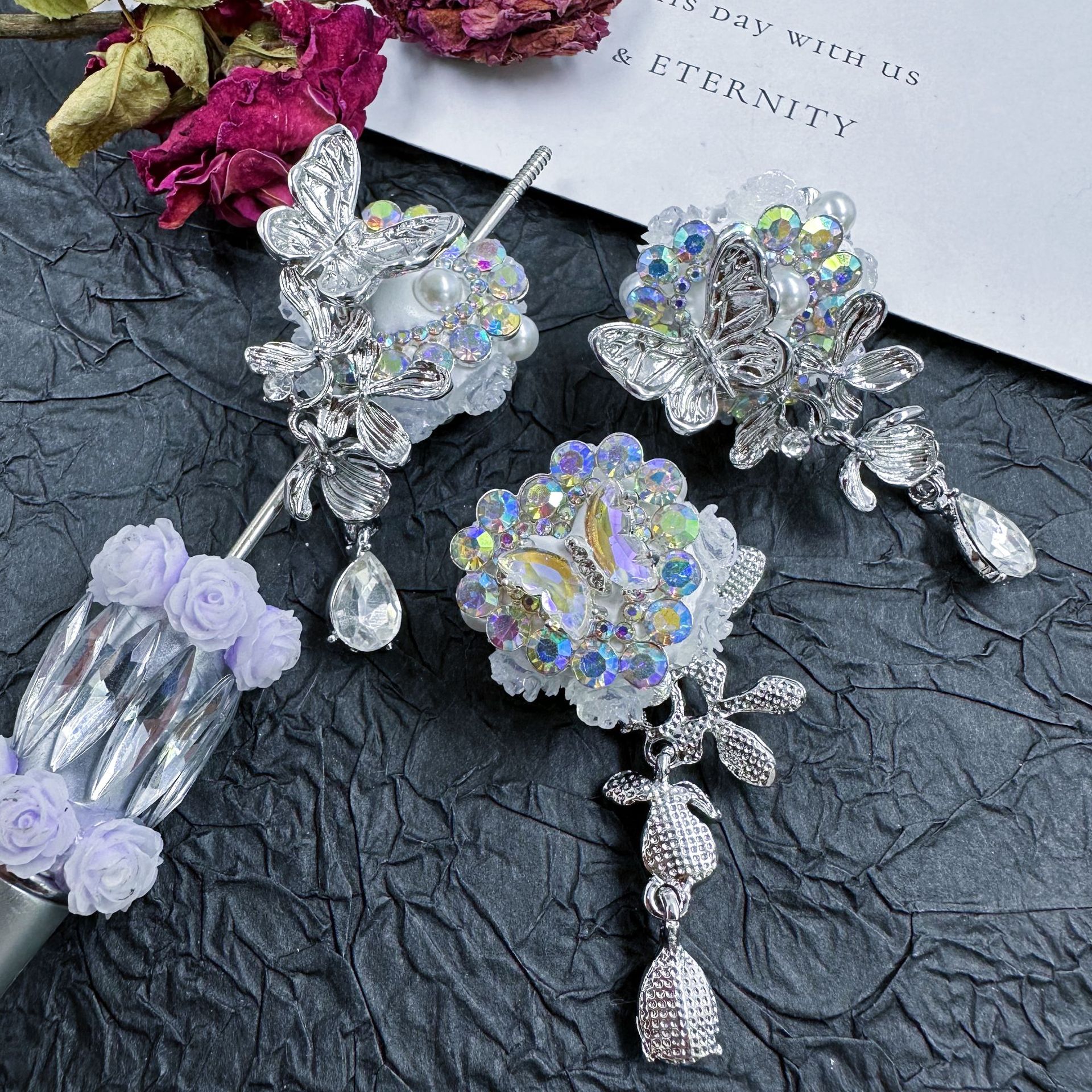 [chuxun home] popular crystal flower heavy industry tassel mobile phone charm accessories butterfly diy alloy beads pen material 中文版