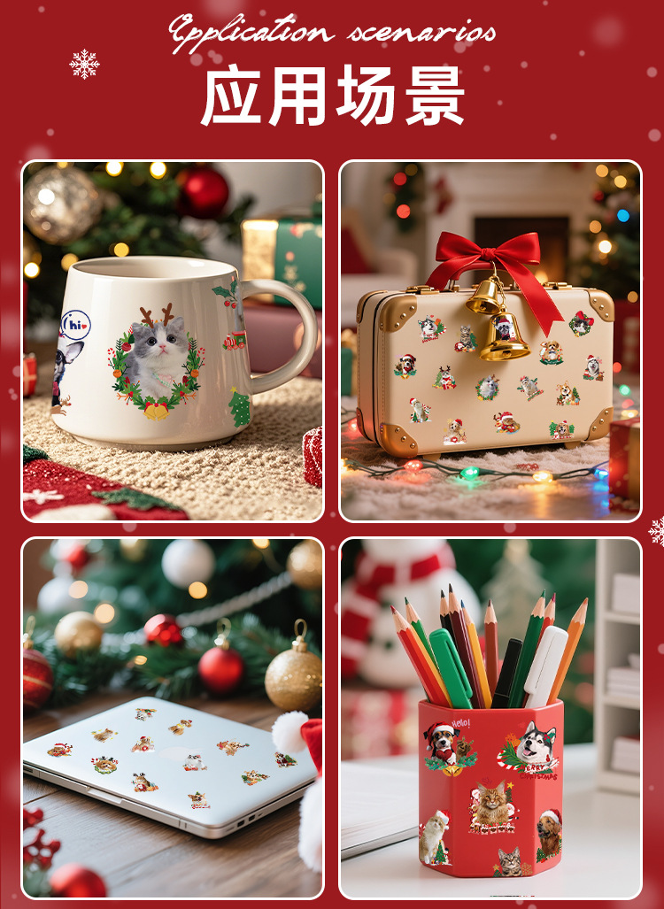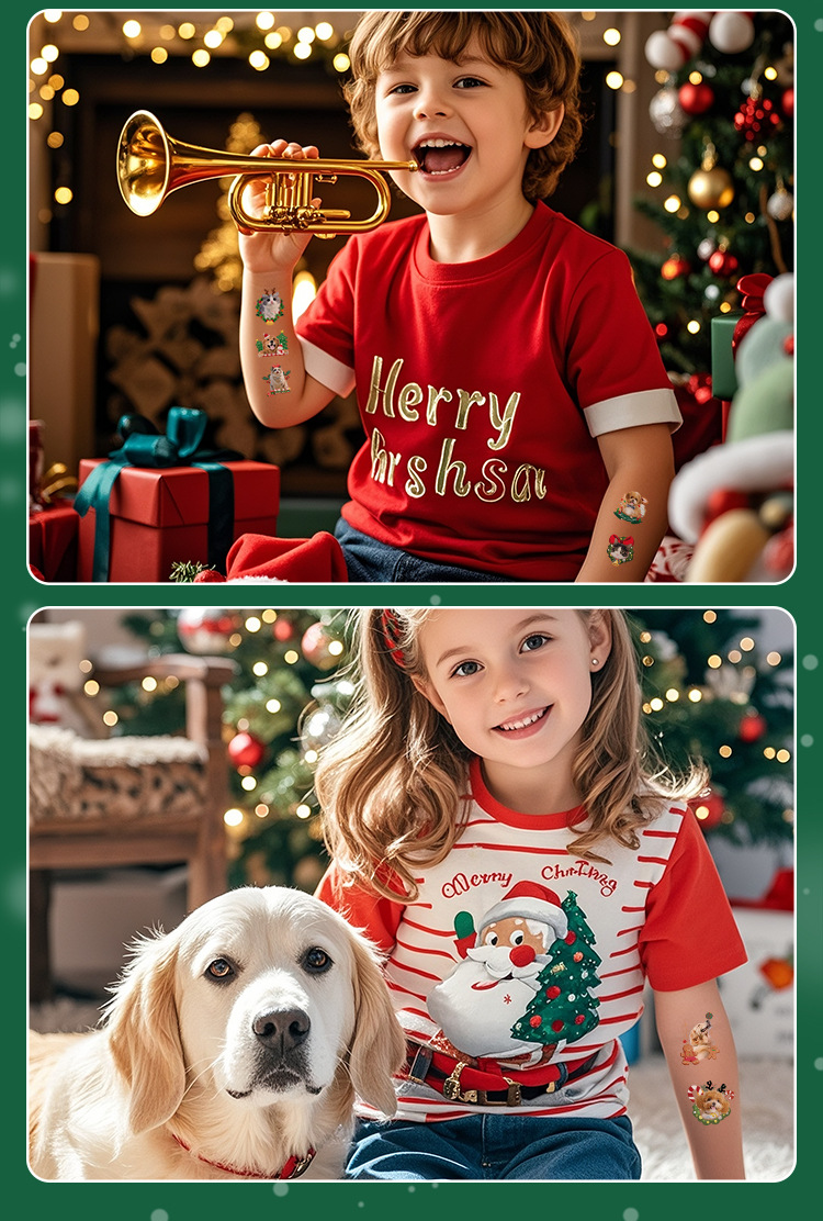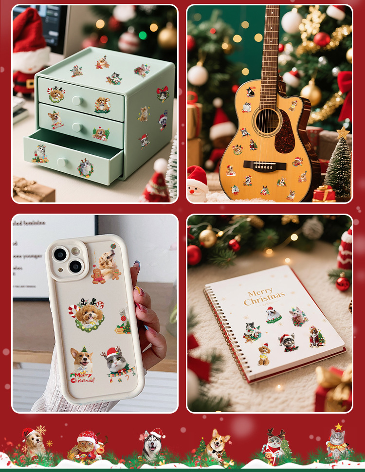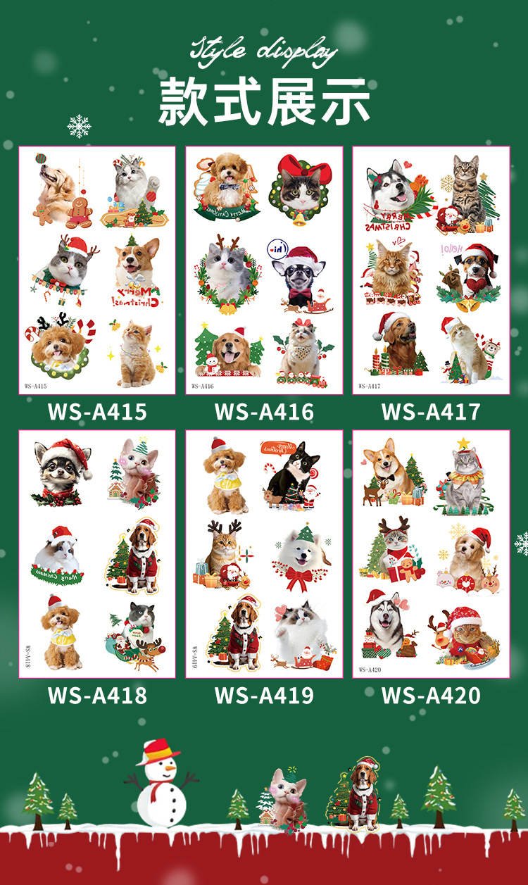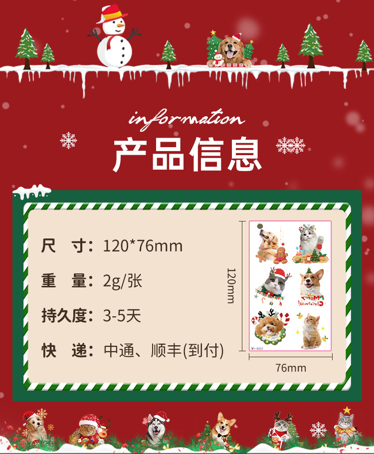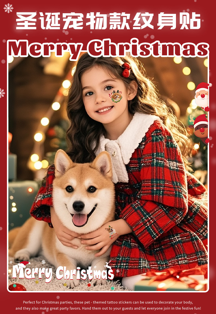 cross-border new arrival cute christmas pet photo tattoo sticker christmas party children diy stationery decorative sticker 中文版
