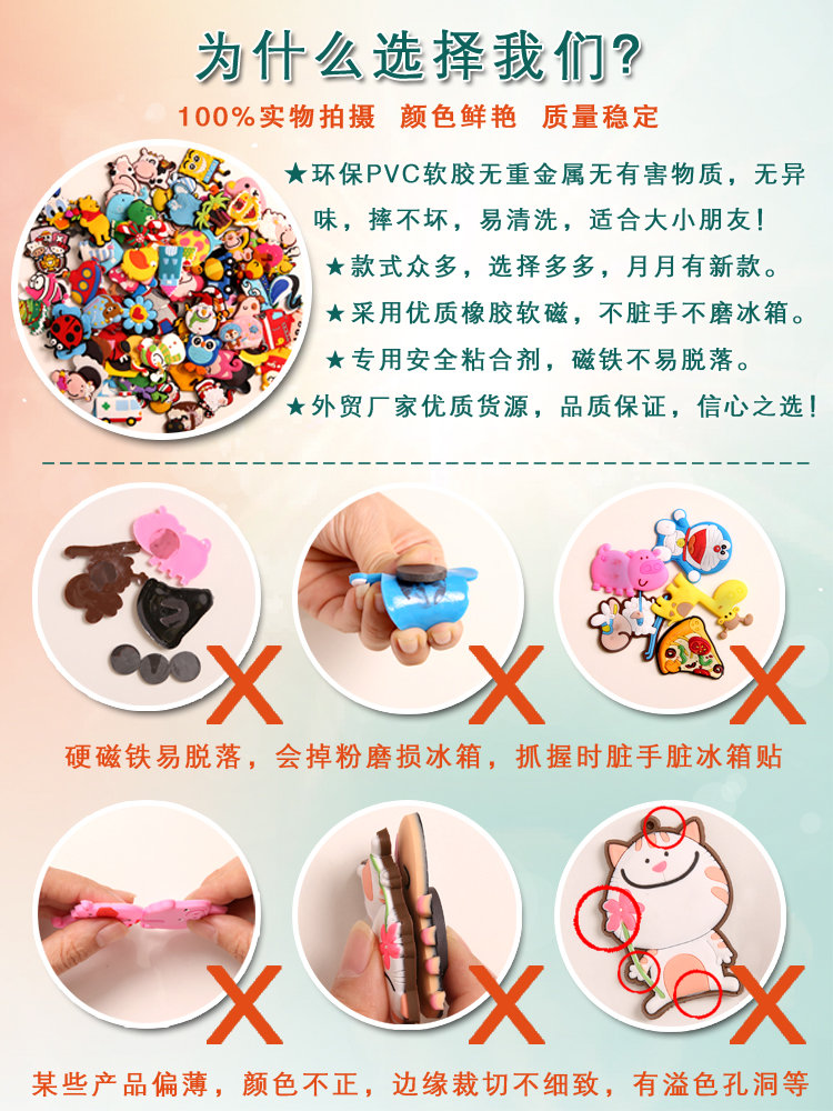 - Material: High-quality environmental-friendly PVC soft rubber, rubber soft magnet.Will not scratch and dirty the surface of the refrigerator, and there is no need to worry about the magnet being easily detached (except for violent destruction).
