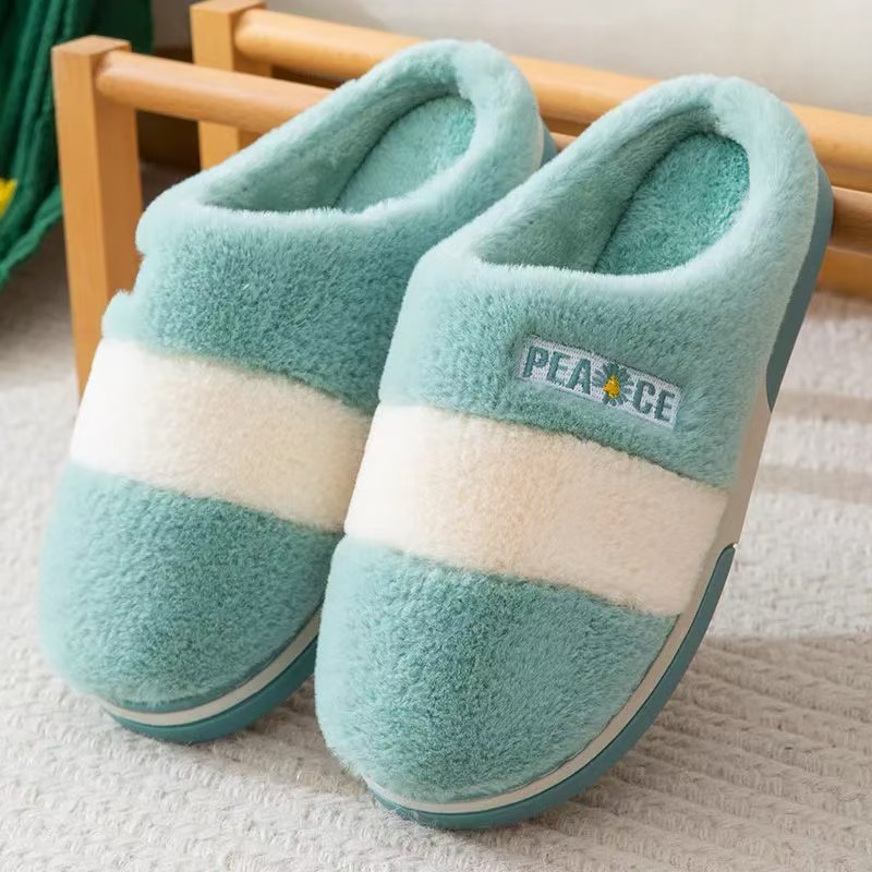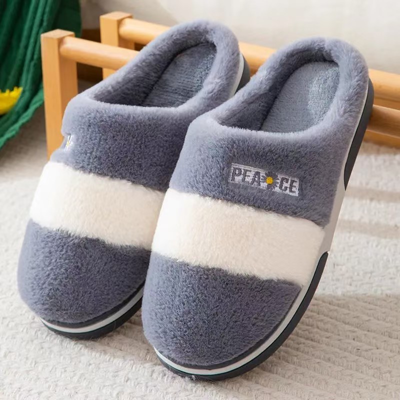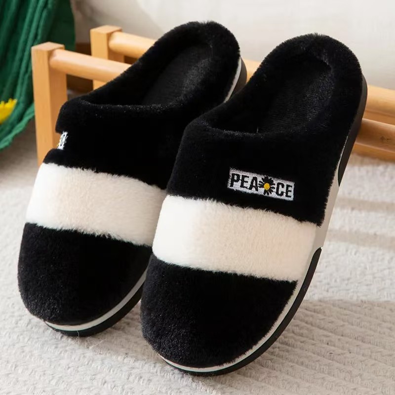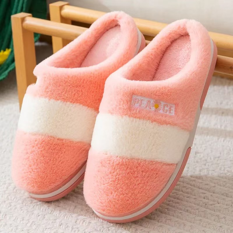 2025 new small chrysanthemum trendy fashion non-slip comfortable cotton shoes two colors striped men and women same style cotton slippers 中文版