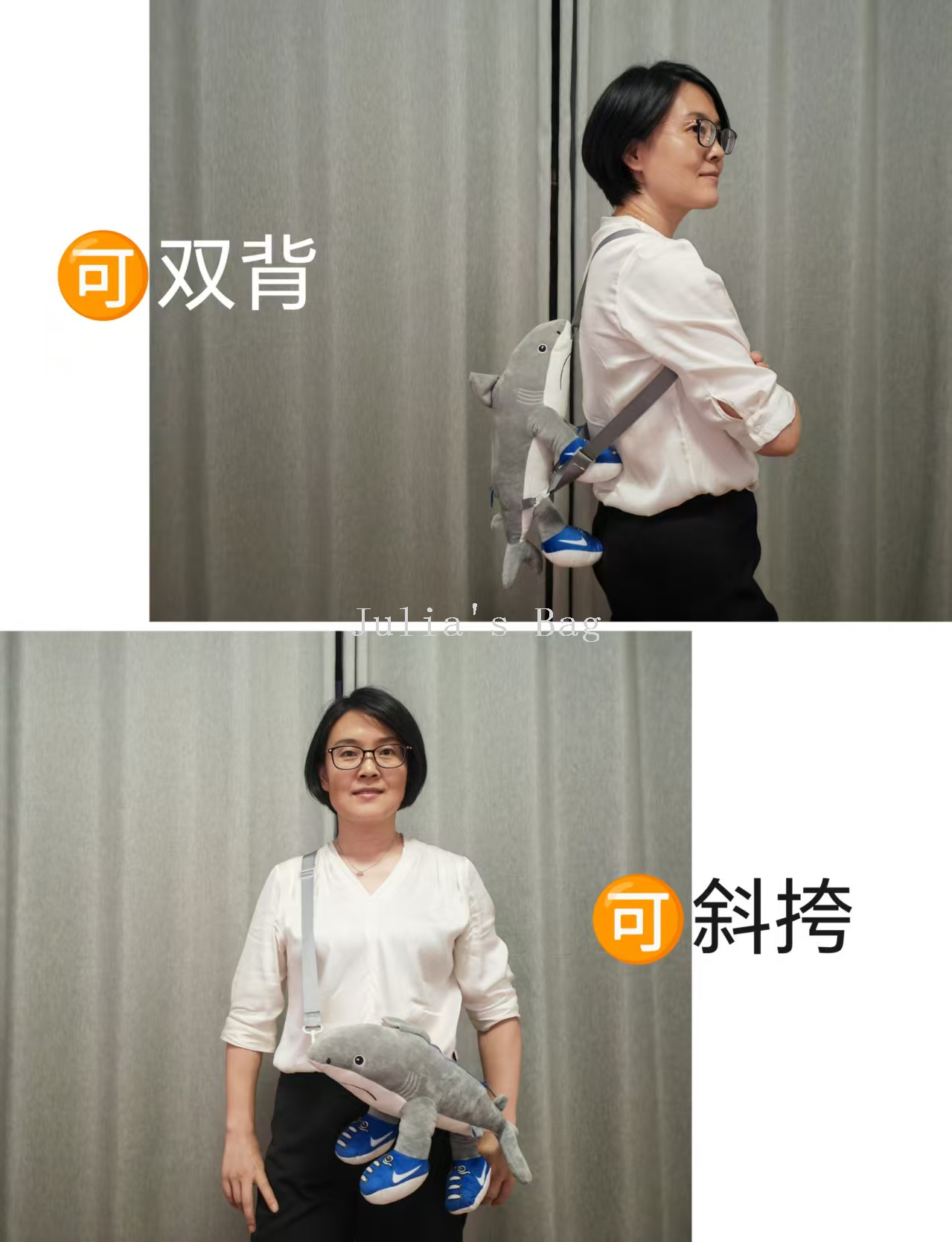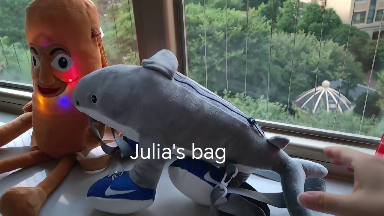 shanhai sutra schoolbag tongtong plush bag children's bags wooden stick shark backpack cartoon bag 中文版