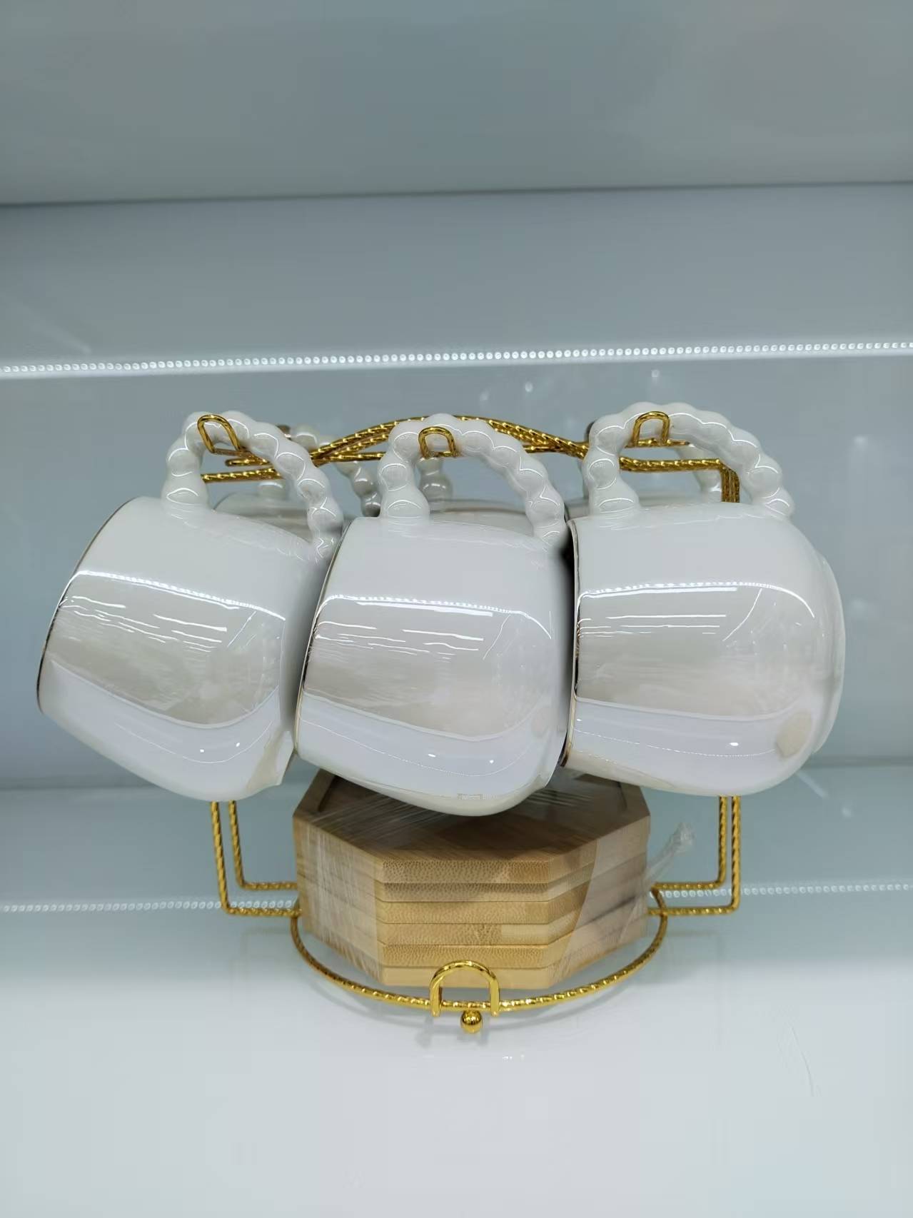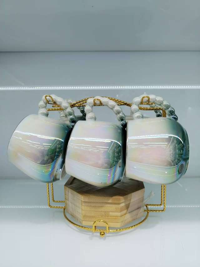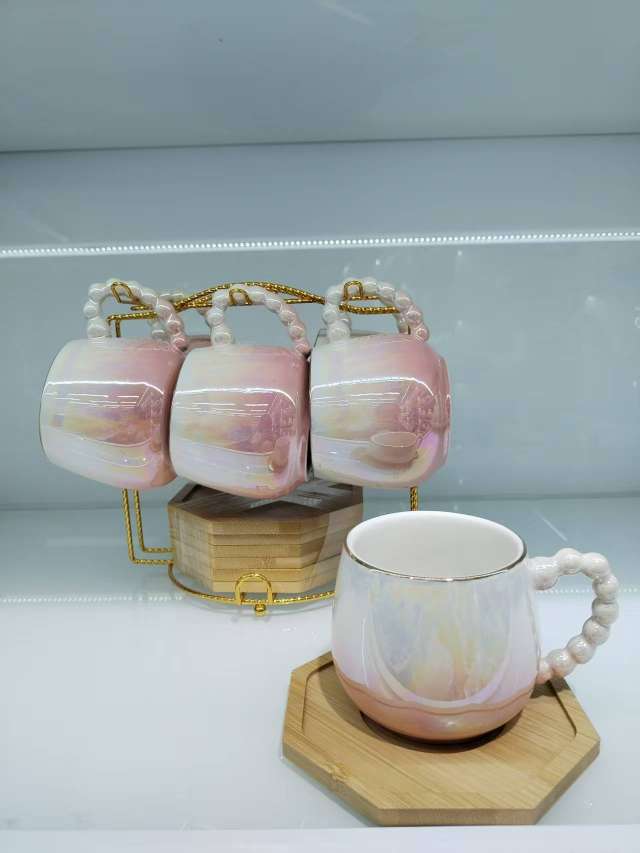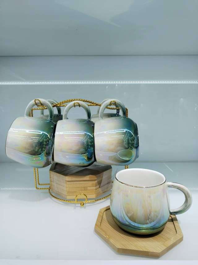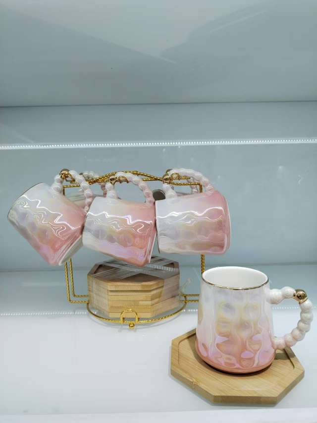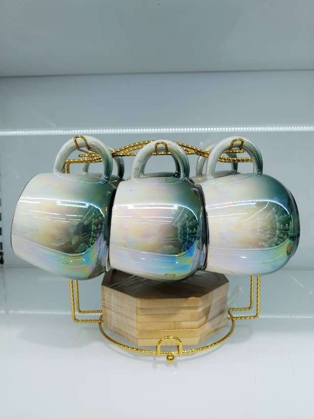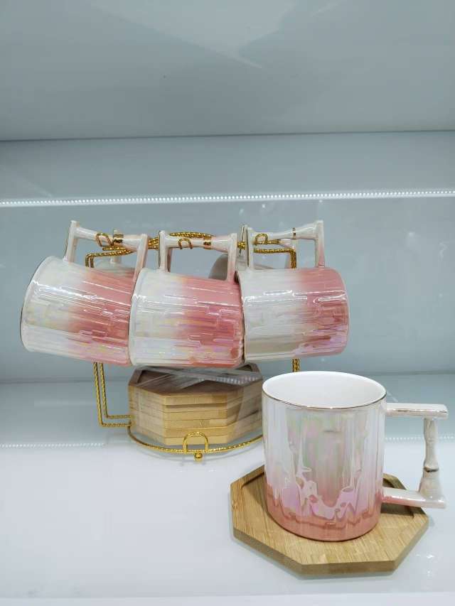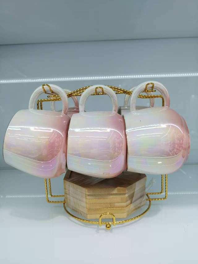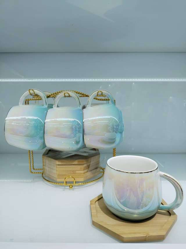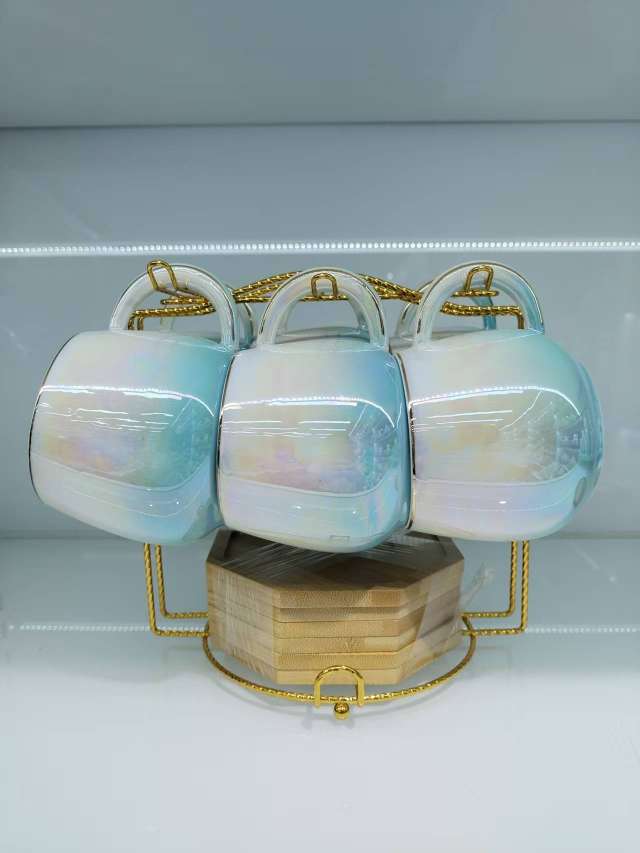 Coffee Cup and Saucer Set with Spherical Cups and Pearl Glaze Series New Model 6 Cups and 6 Plates for Gift Customization