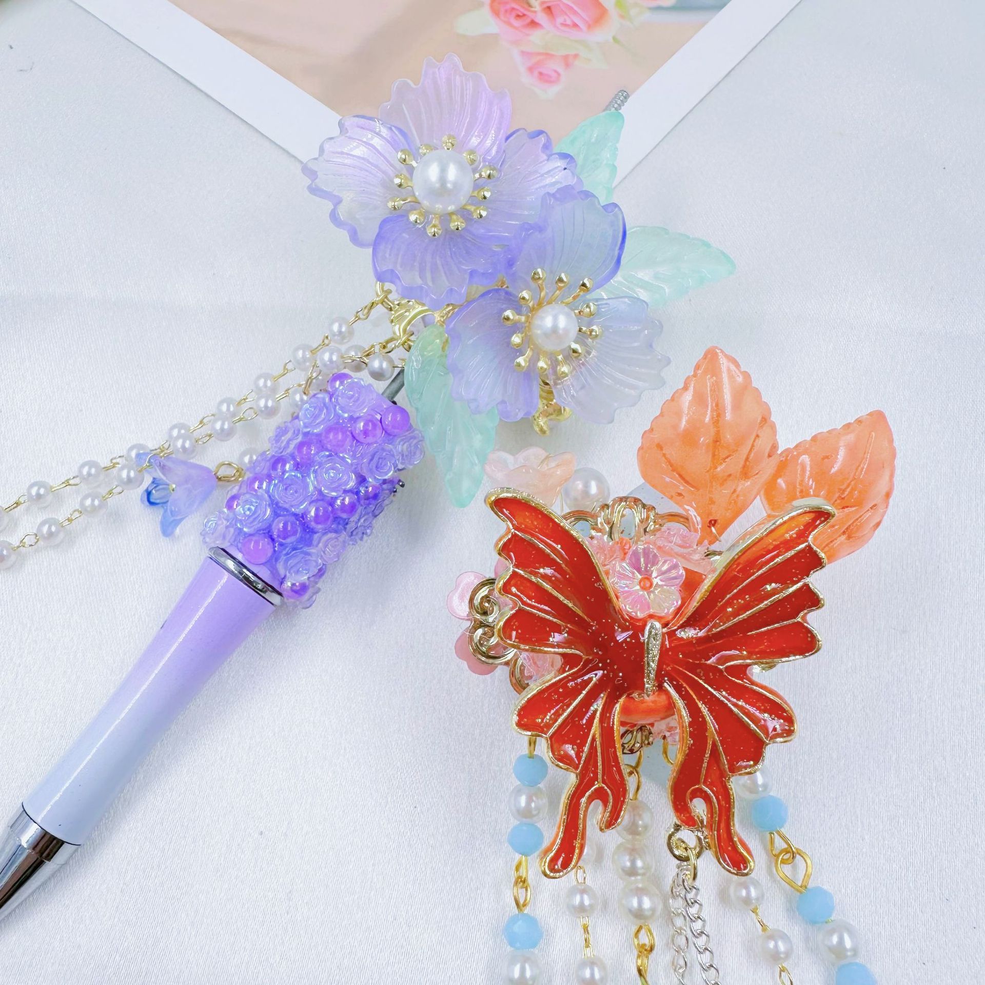 [chuxun home] ancient style hot heavy industry beads accessories butterfly fan diy mobile phone charm accessory clay 中文版