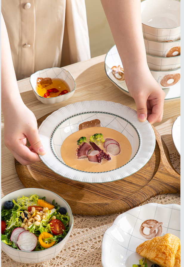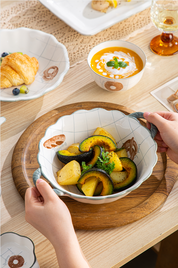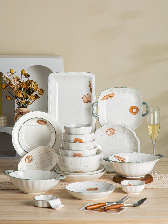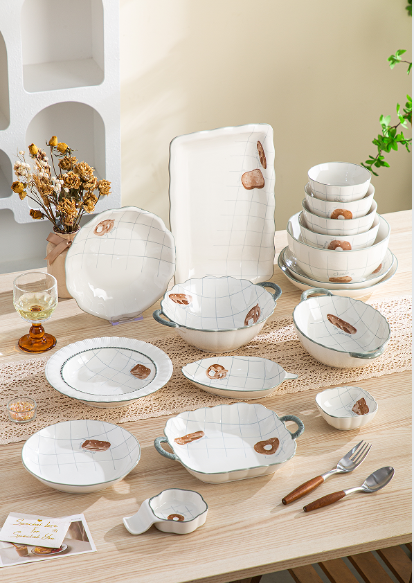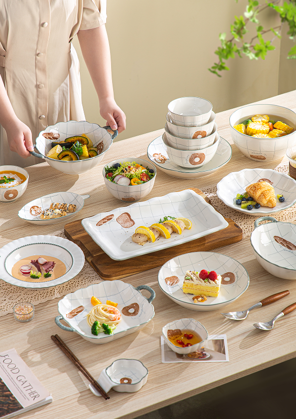 Ceramic Bowl Rice Bowl Soup Bowl Seasoning Double Ear Plate Ceramic Bowl Gift Set Tableware Set Gift Customization Ceramics