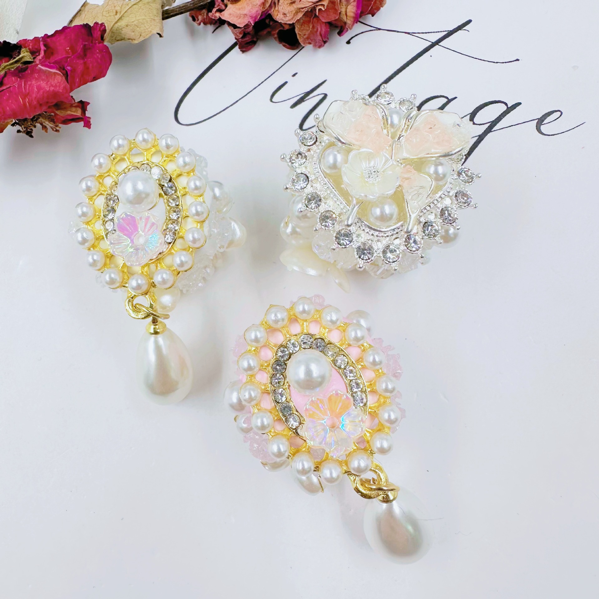 [chuxun home] autumn and winter heavy industry beads accessories pearl butterfly petals diy mobile phone charm clay accessories 中文版