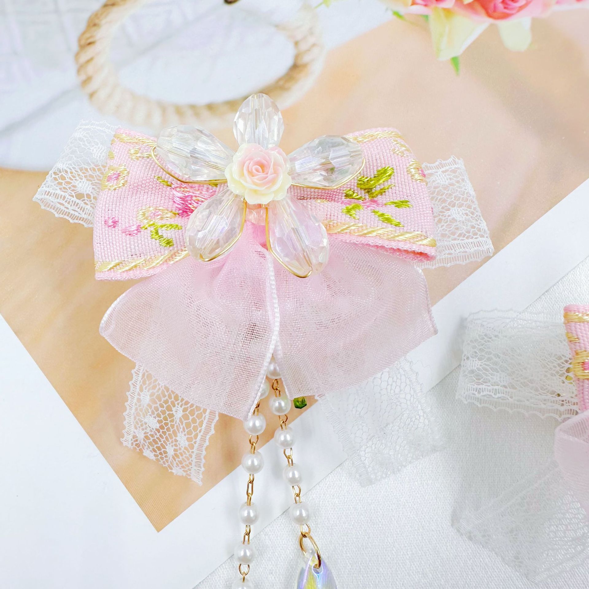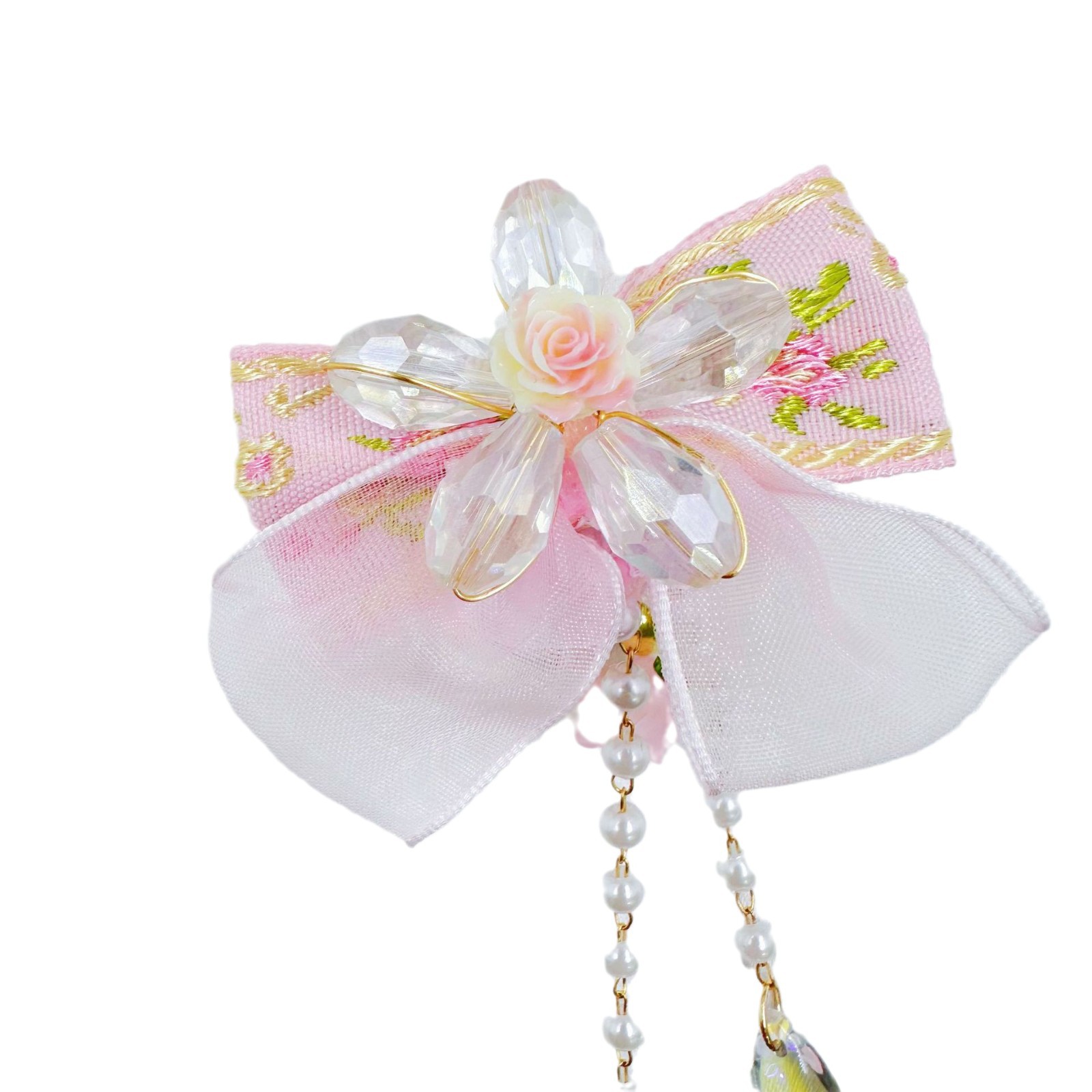 [chuxun home] autumn and winter pink mesh bow mobile phone charm accessories heavy industry straight hole beaded pen material wholesale 中文版