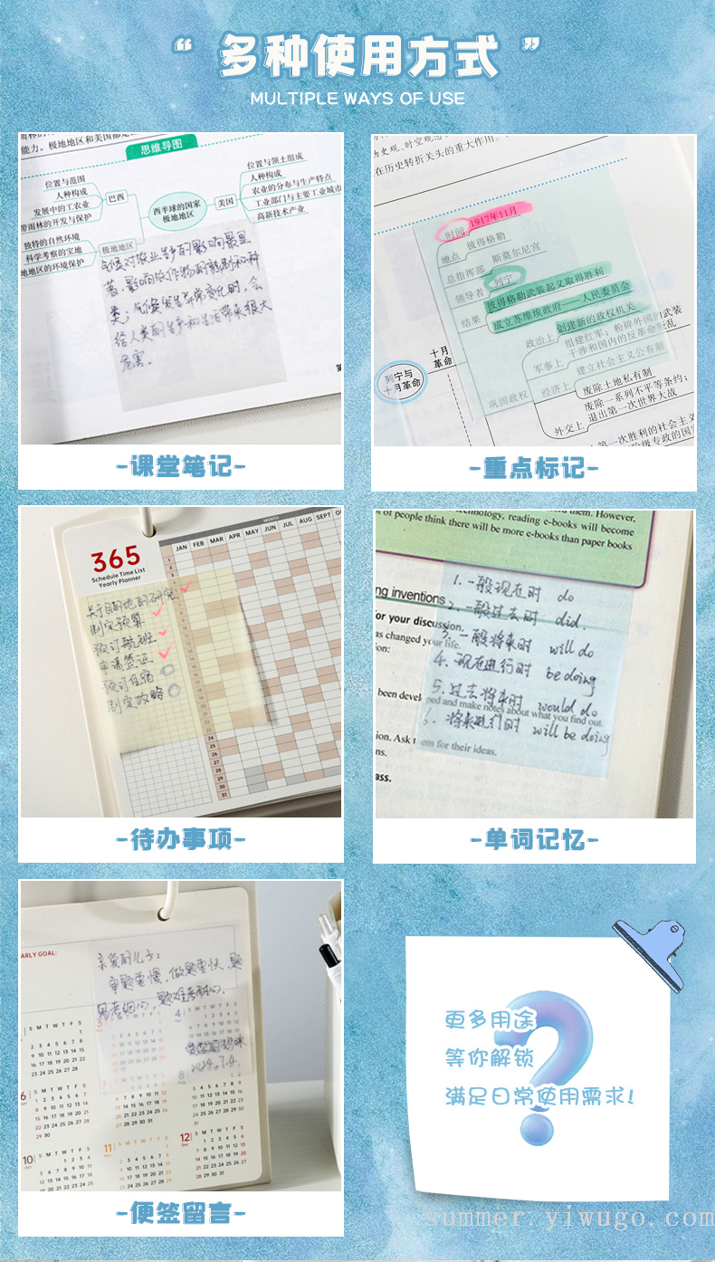 pull transparent sticky notes good-looking student only wrong question correction stick label office tag note memo note 中文版