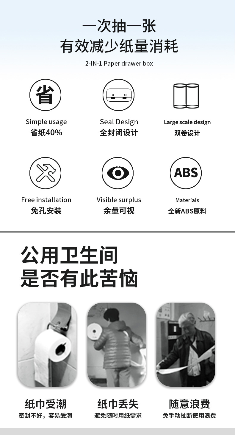 hotel commercial double roll center large plate tissue box wall-mounted toilet paper toilet large roll paper box paper saving artifact 中文版