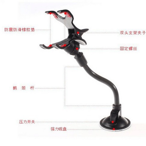 cross-border purchase car phone holder 360-degree rotating double clip head universal multifunctional for navigator mobile phone holder 中文版