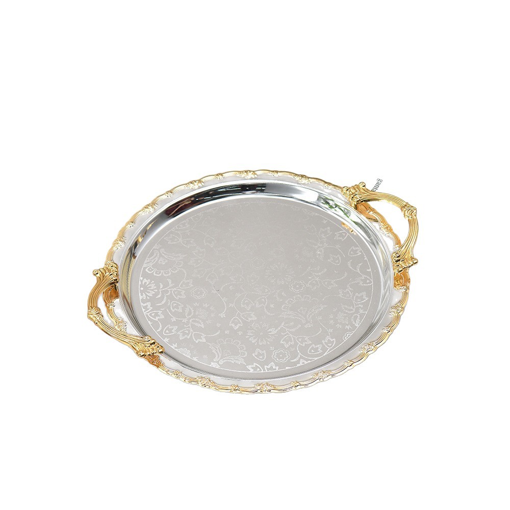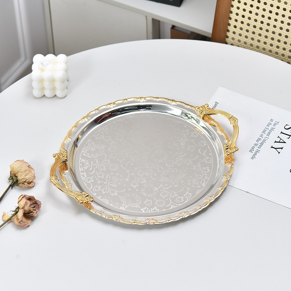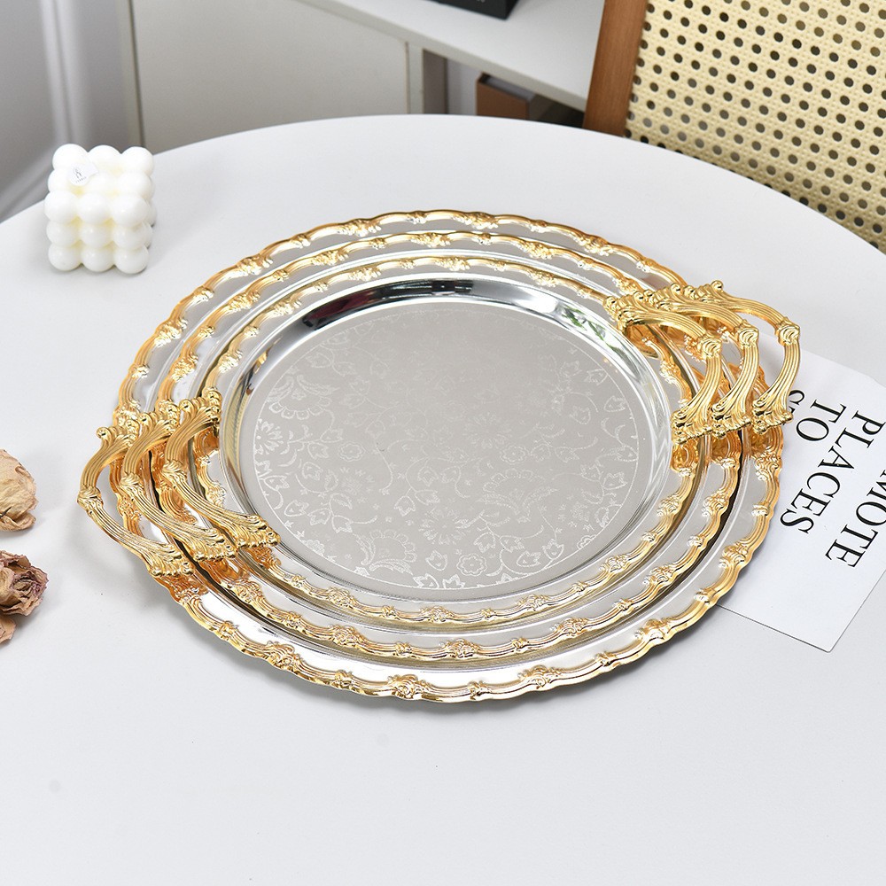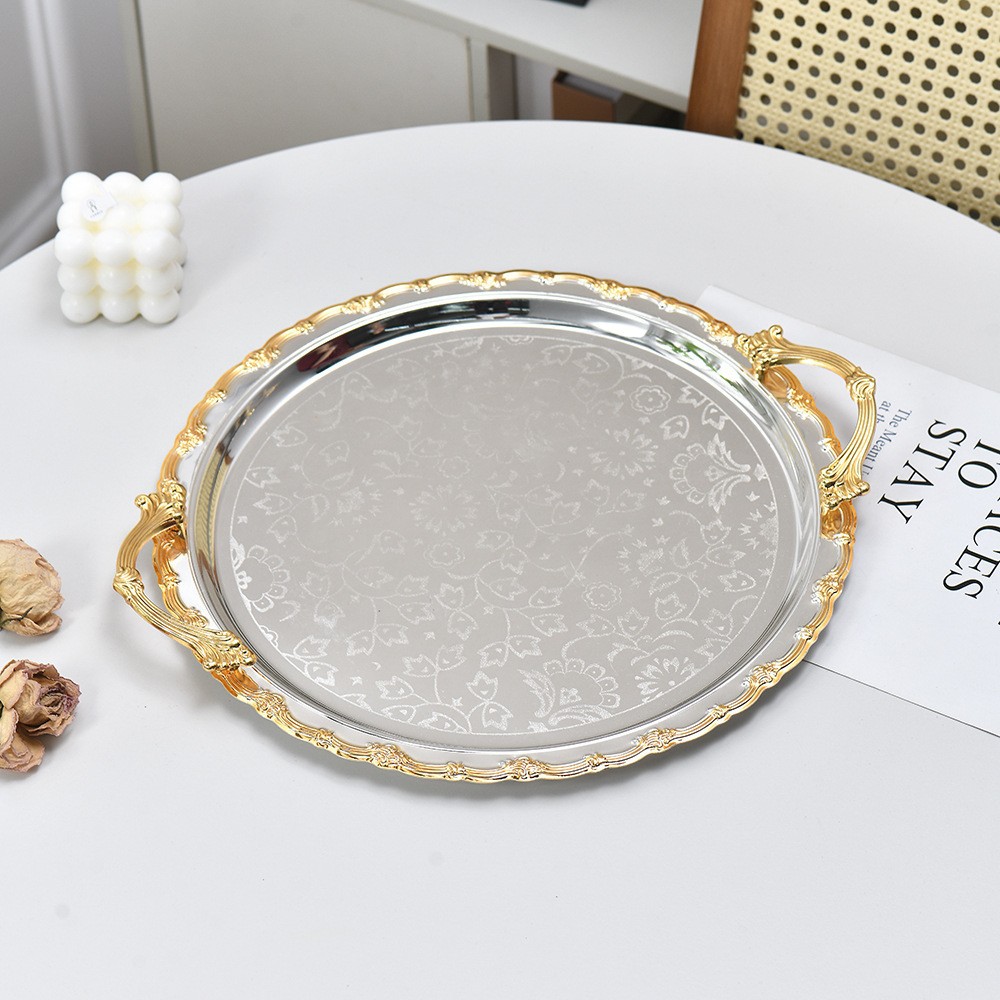 light luxury silver golden edge round tray tea snack plate jewelry jewelry and cosmetics storage tray dessert table ornaments 中文版