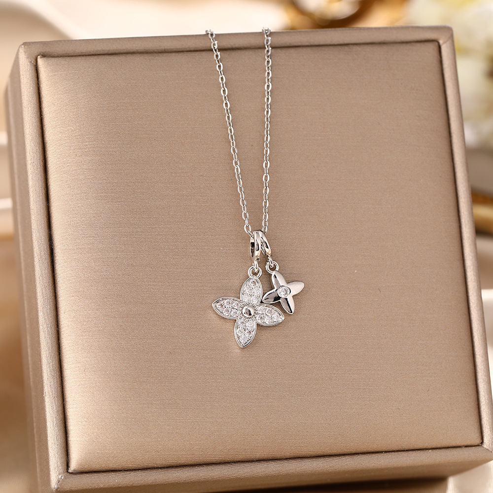 8029-silver four-leaf clover