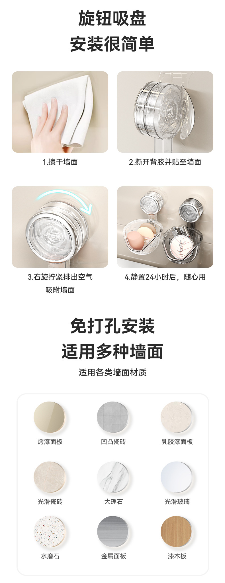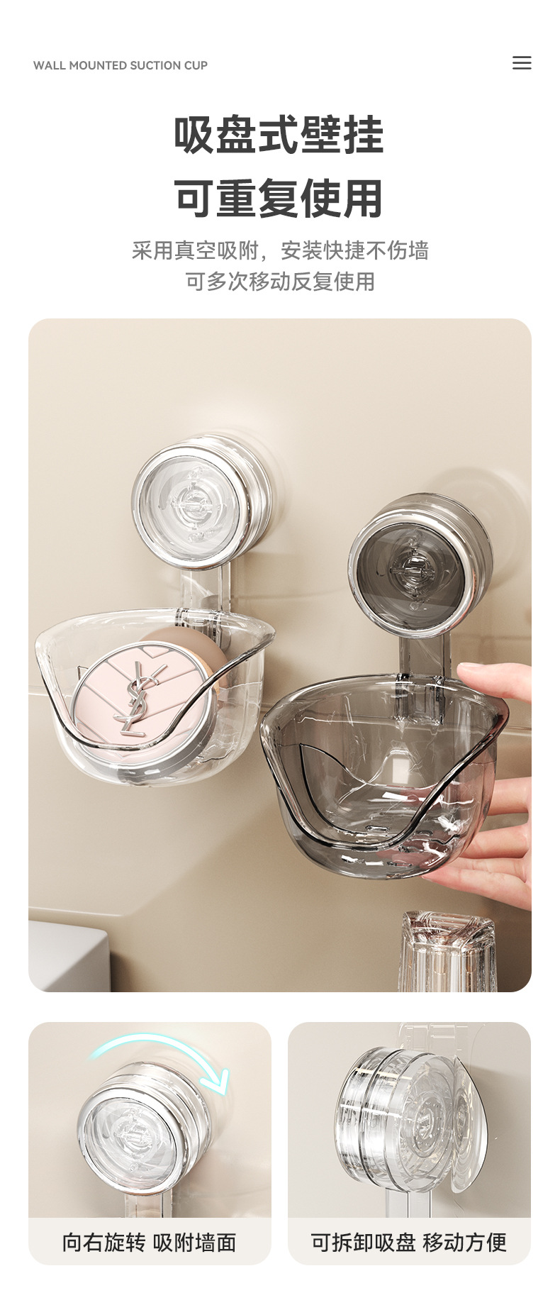 吸盘置物架 浴室吸盘置物架 壁挂式置物架 卫生间浴室置物架 塑料置物架 置物架吸盘 墙上置物架免打孔 免打孔墙上置物架