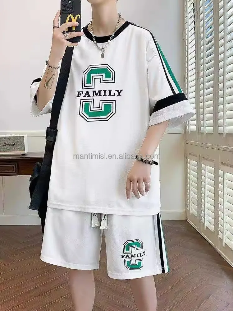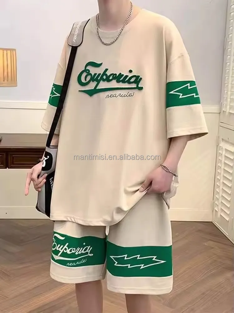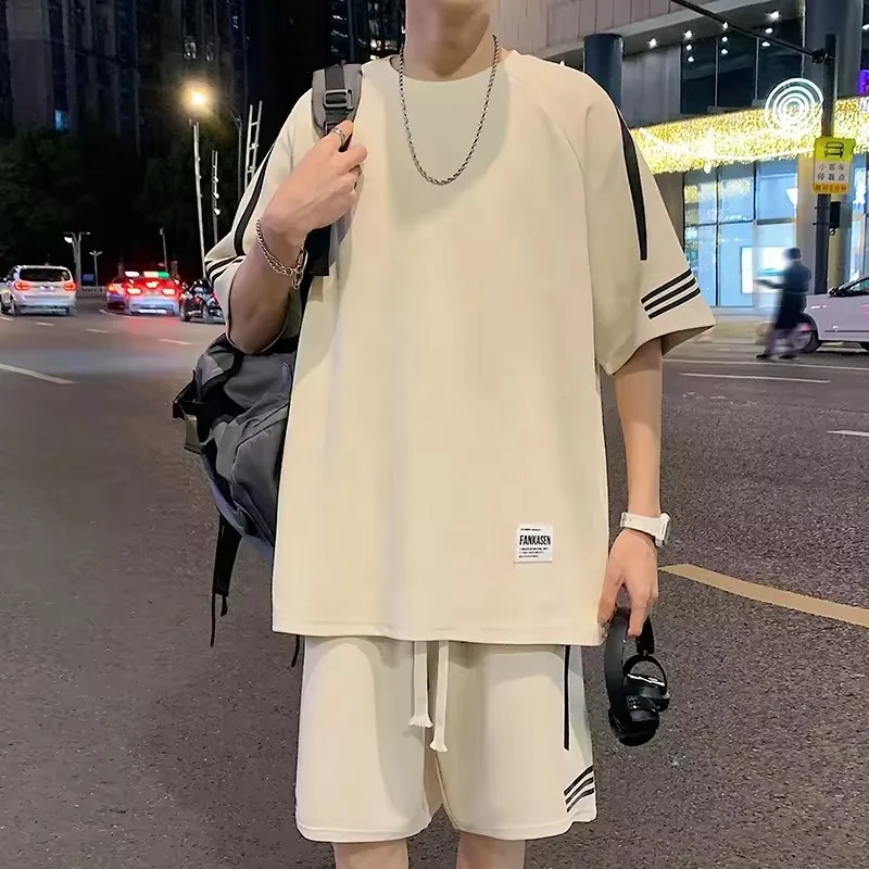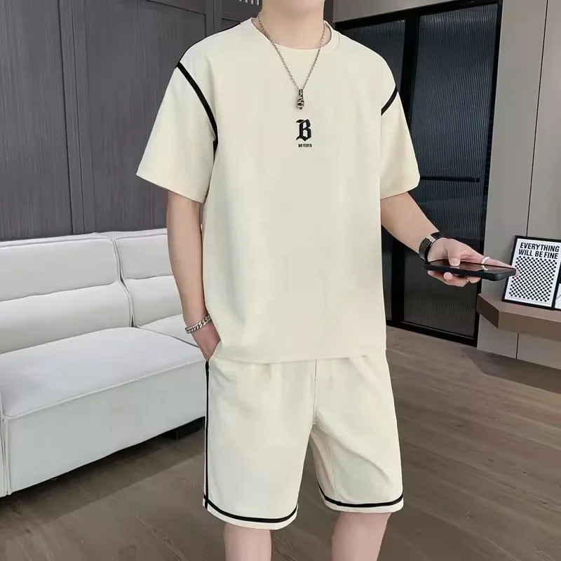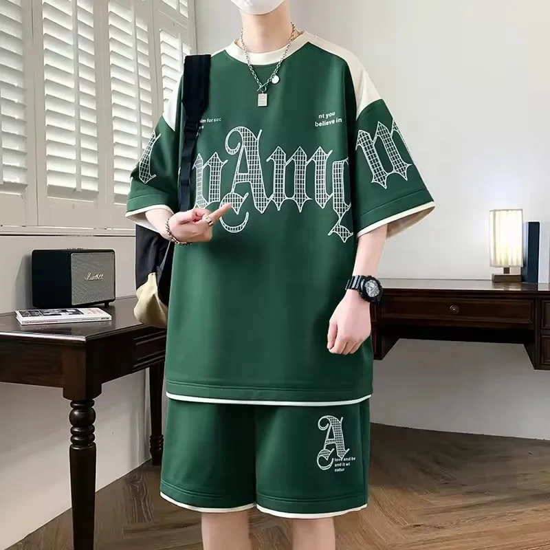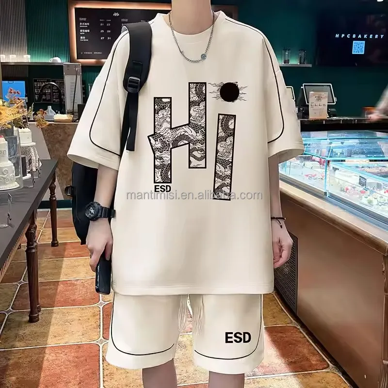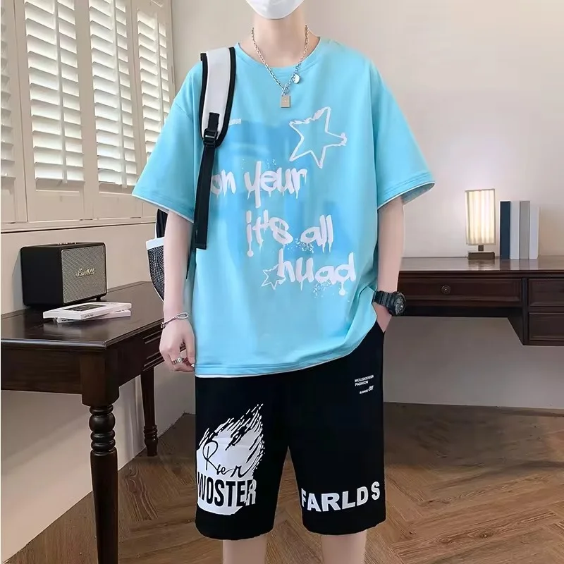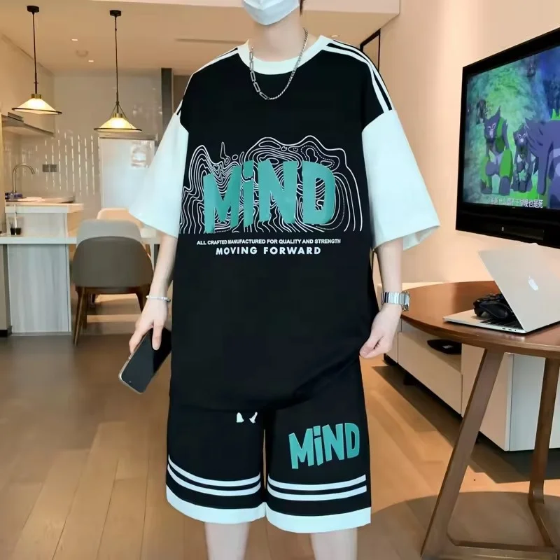 Casual Sportswear Short Sleeve T-shirt Tracksuit Unisex Jogging Fashion Two-piece 100% Cotton Men's Casual Print Pattern