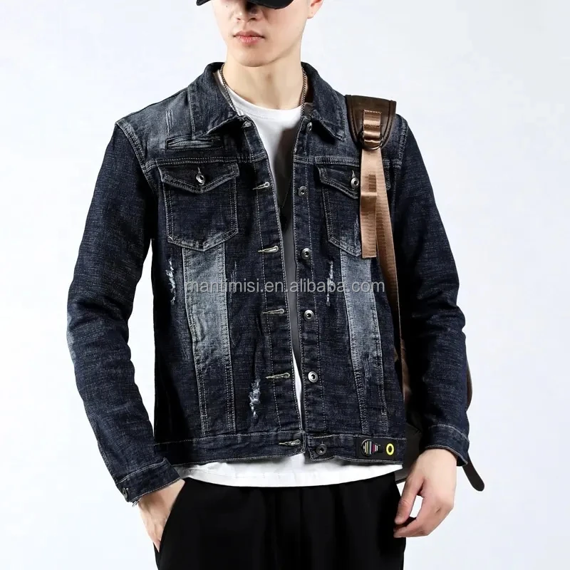 Jean Jacket for Men Slim Fit Ripped Denim Jacket Coat