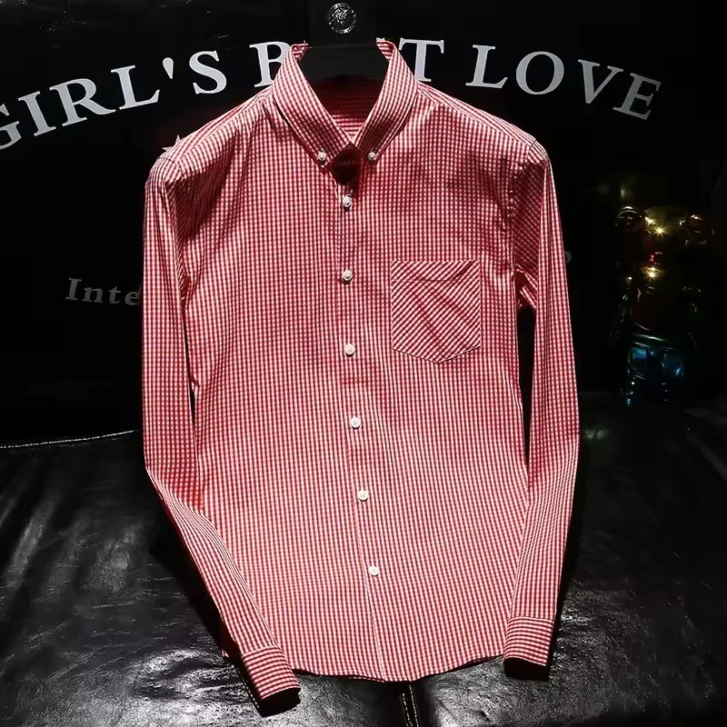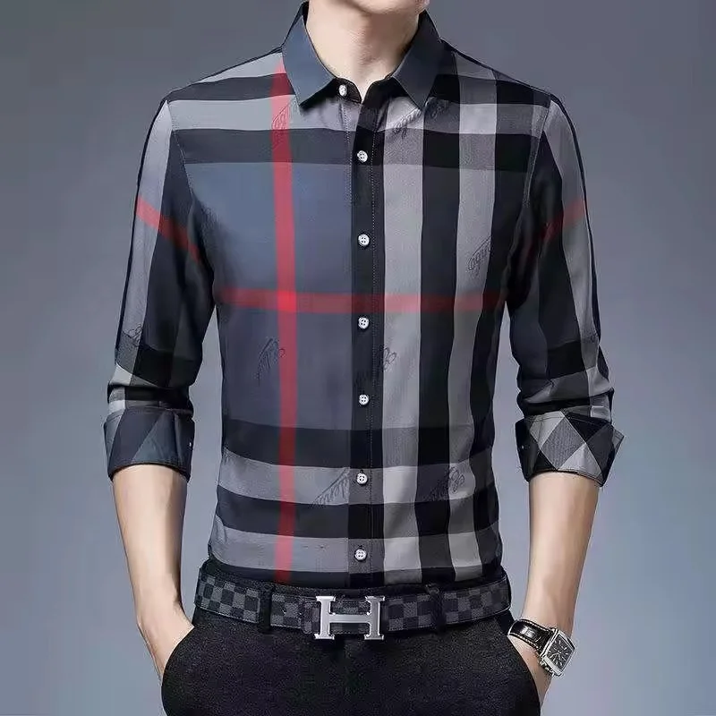 Men's Regular Fit Gingham Shirts 100% Cotton Satin Plaid Button Down Long Sleeve Dress Shirts