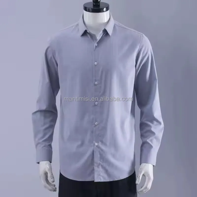 Men's 100% Cotton Satin Shirt with Wrinkle Resistance Long Sleeve Button Front