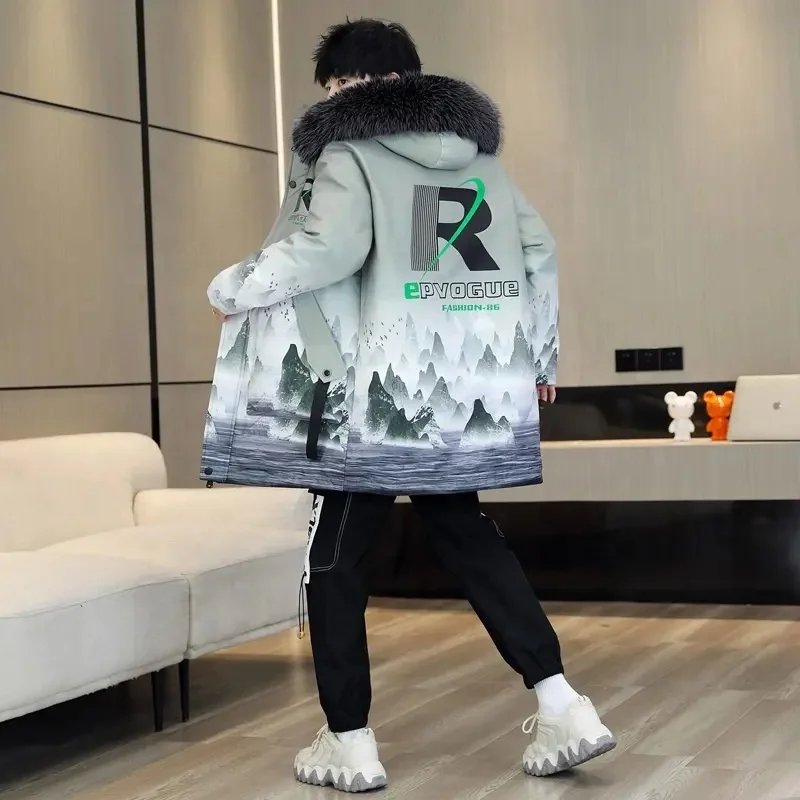 Men's Hooded Winter Coat Warm Puffer Jacket Thicken Cotton Coat with Removable Hood