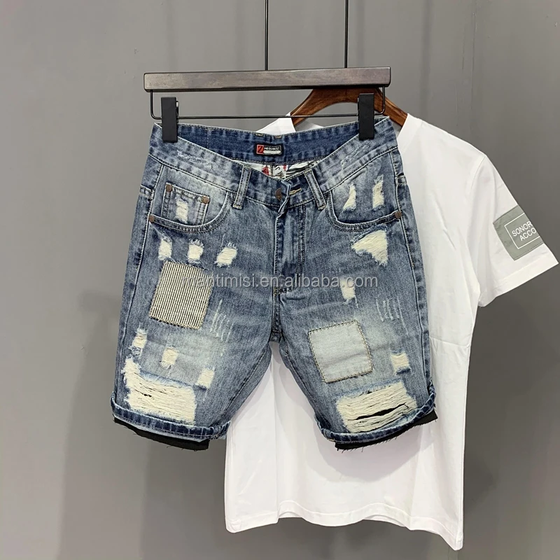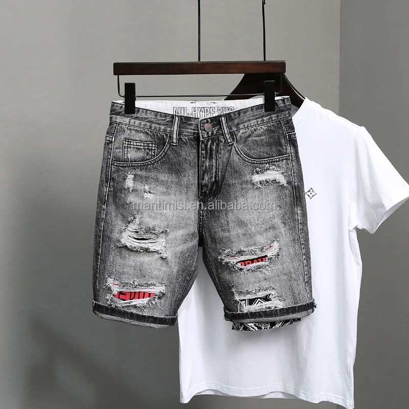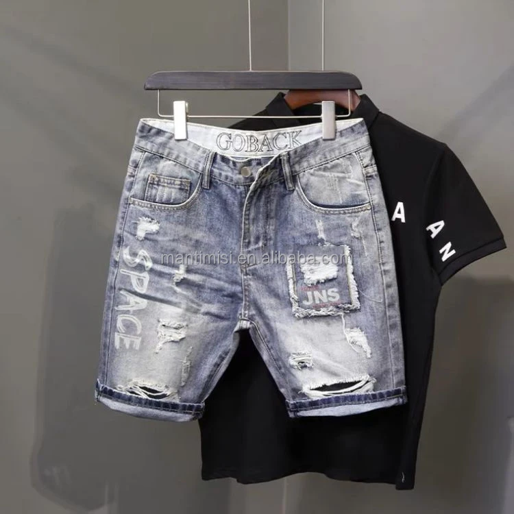 Men's Ripped Jean Shorts Casual Distressed Denim Shorts Summer Short Pants with Pockets