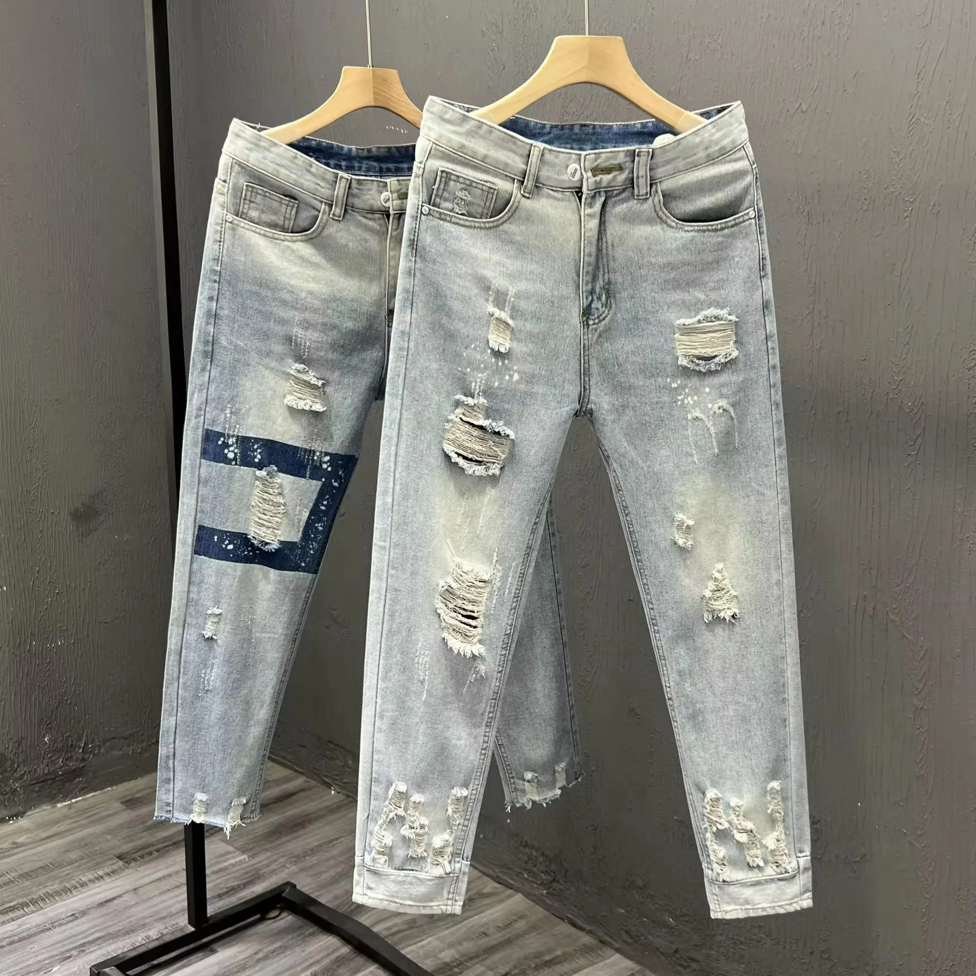 Men's Slim Fit Skinny Stretch Ripped Jeans,Distressed Straight Leg Fashion High Flex Waist Trousers