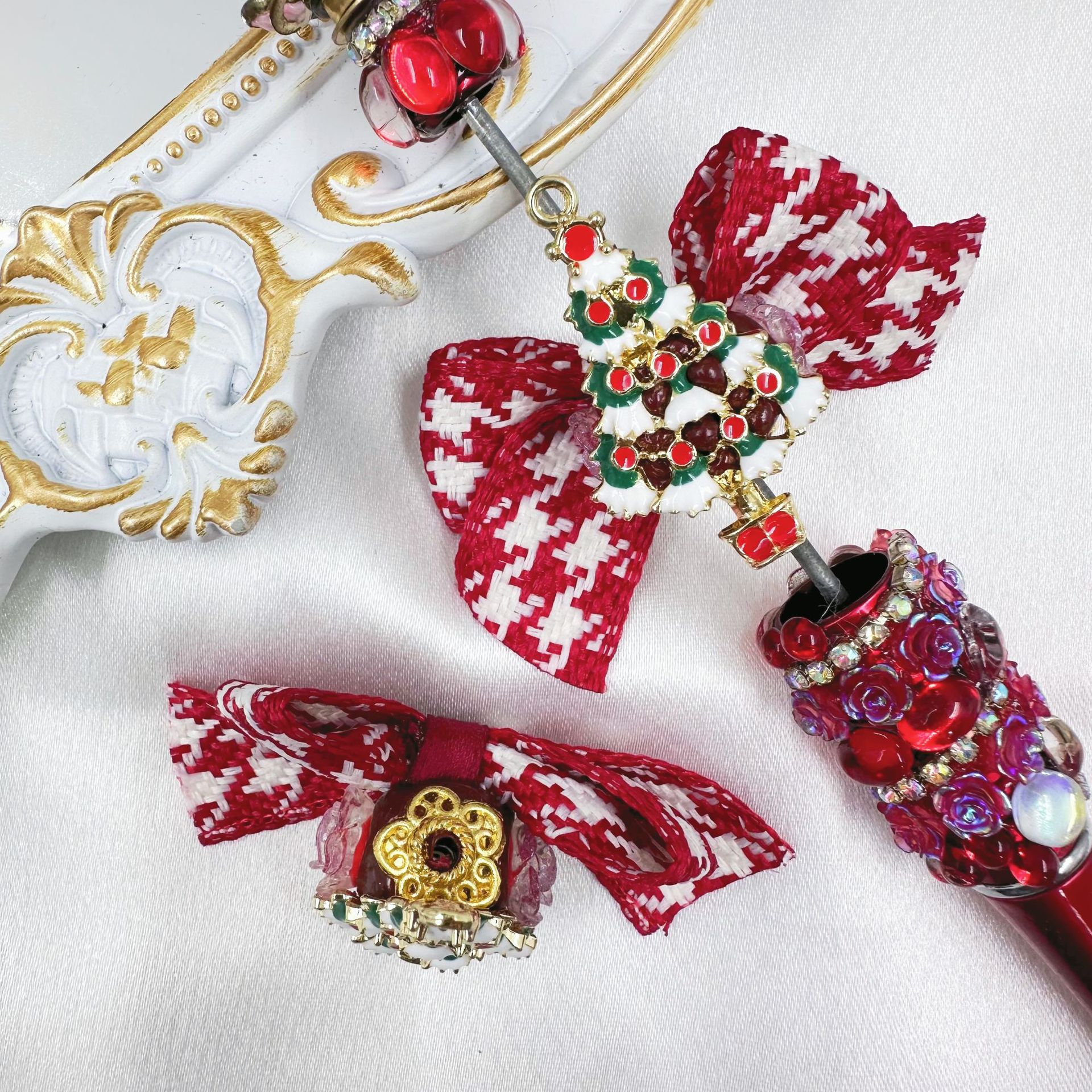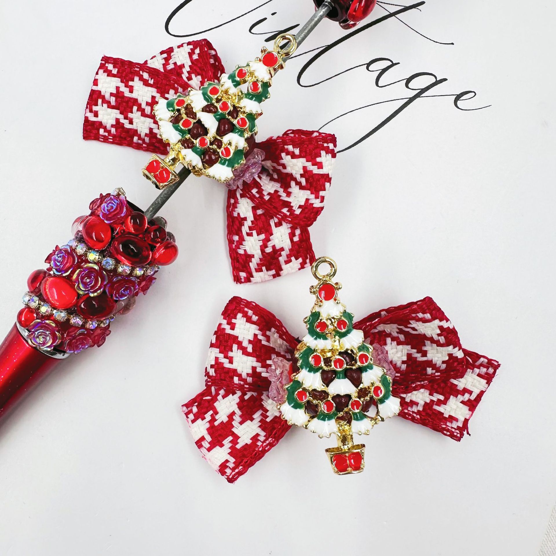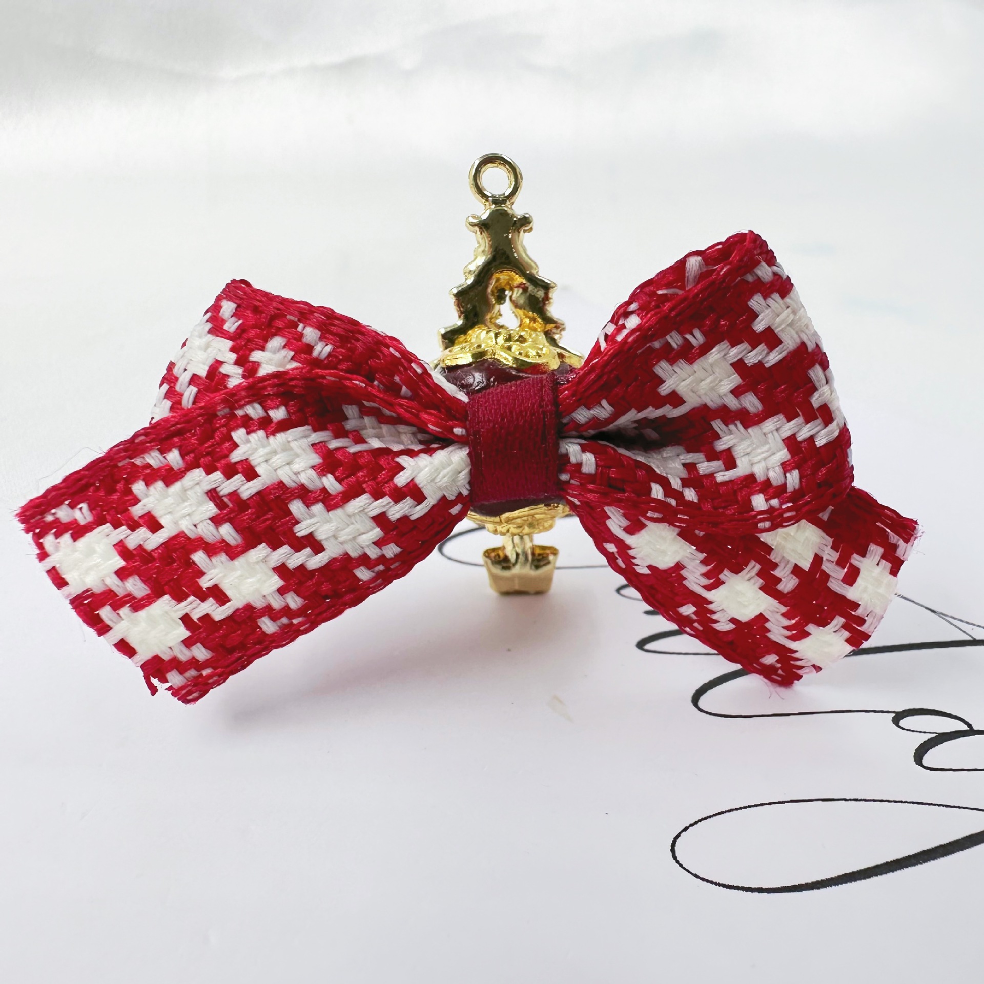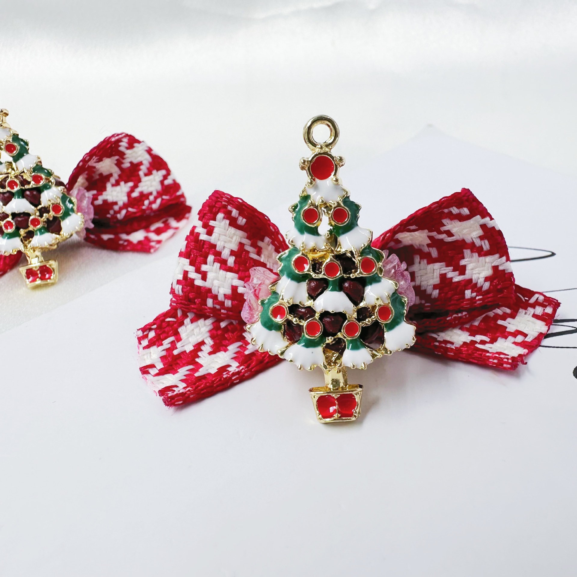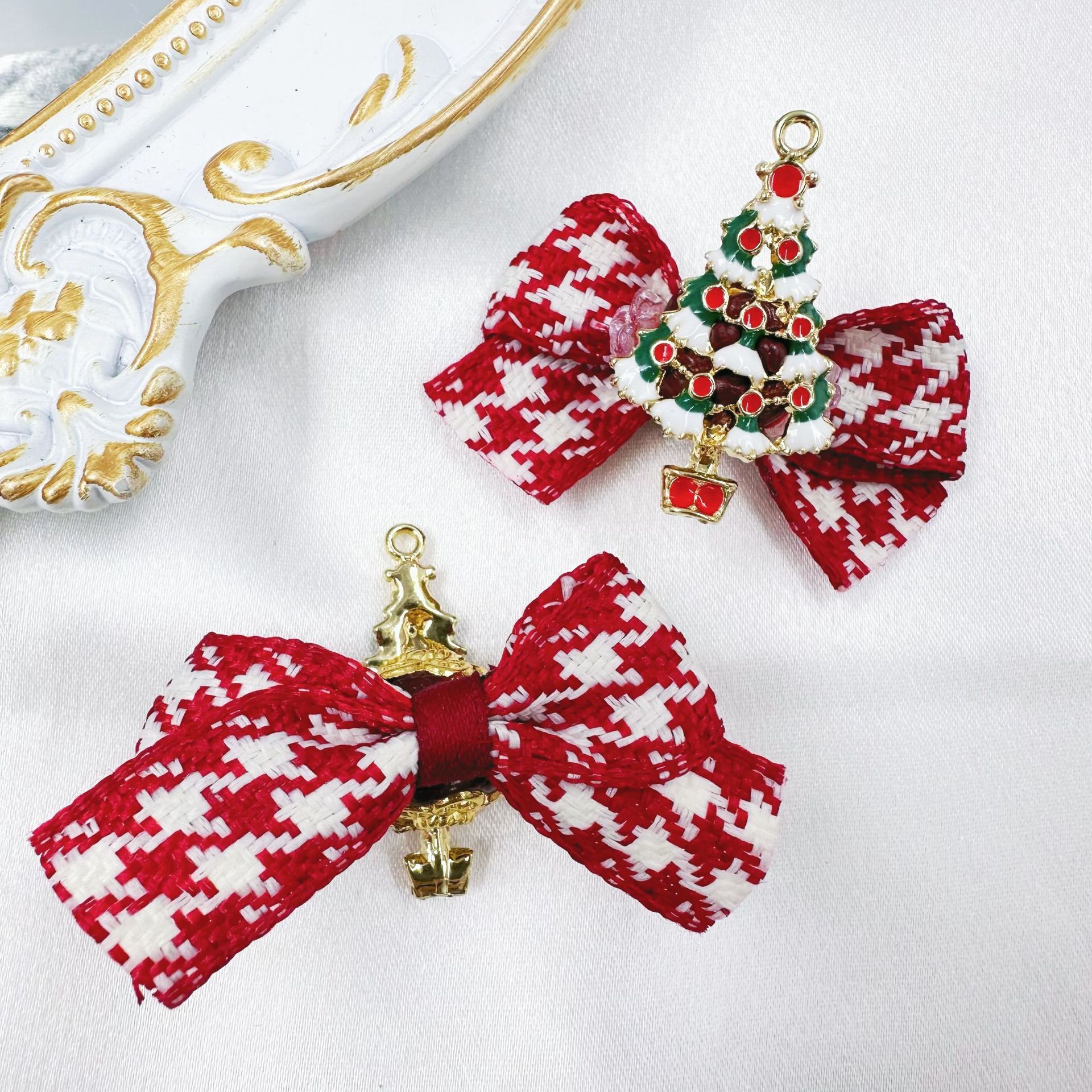 red new year houndstooth bow christmas tree straight hole beaded material heavy industry mobile phone charm accessories wholesale 中文版