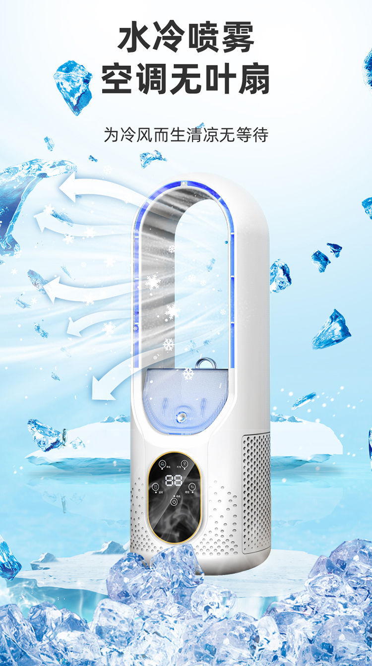 2025 new bladeless fan large wind desktop fan household spray refrigeration small timing air conditioner thermantidote 中文版