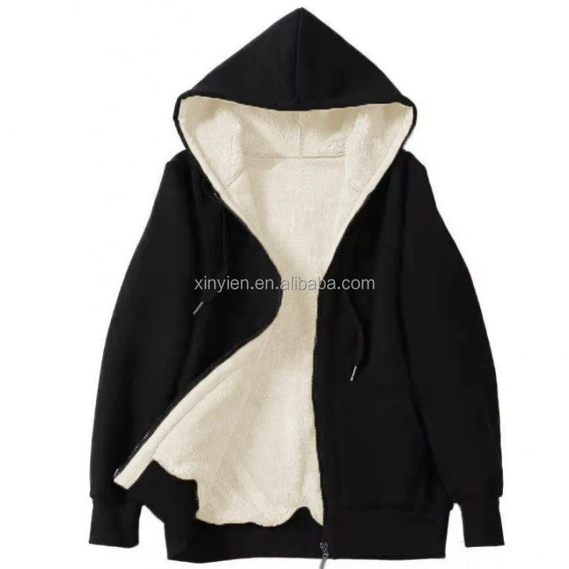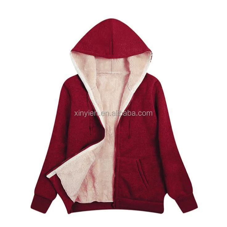Cross-border Explosive Winter Women's Warm Lamb Fleece Pocket Hooded Sports Hoodie Jacket