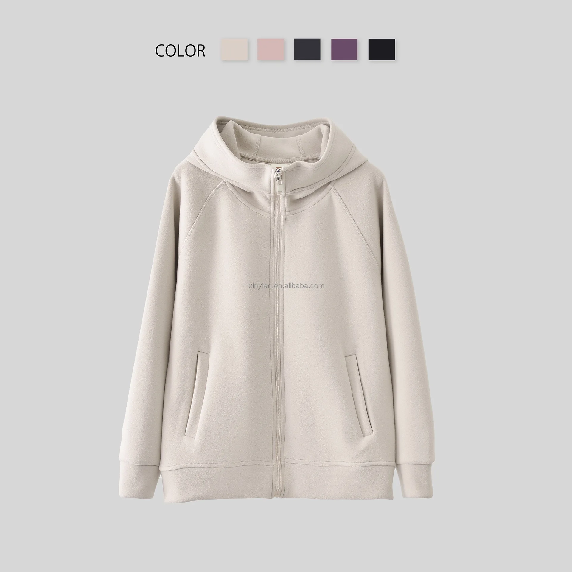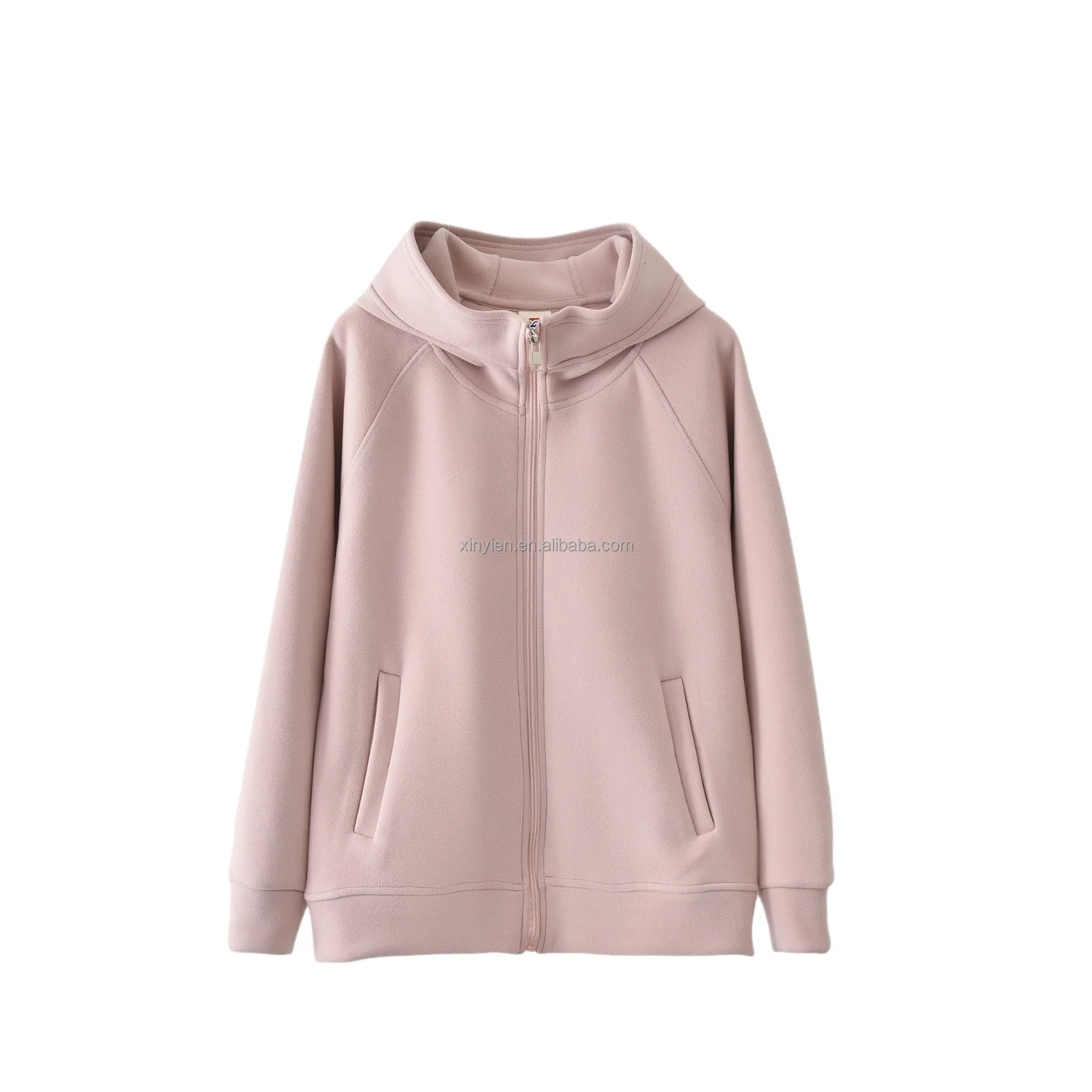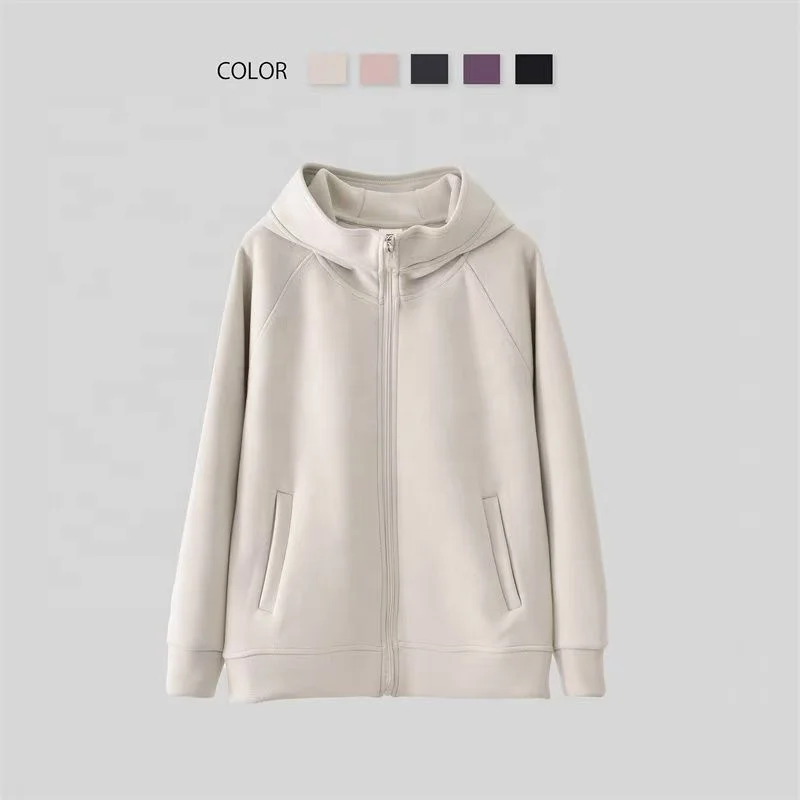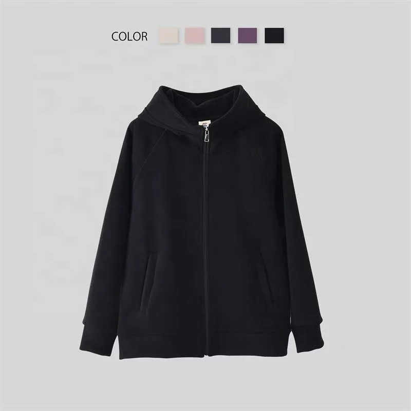 De Velvet Autumn Winter Warm Windproof Coat Ladies Solid Color Allin-one Hooded Zipper Cardigan Top Plus Fleece Thickened Hoodie