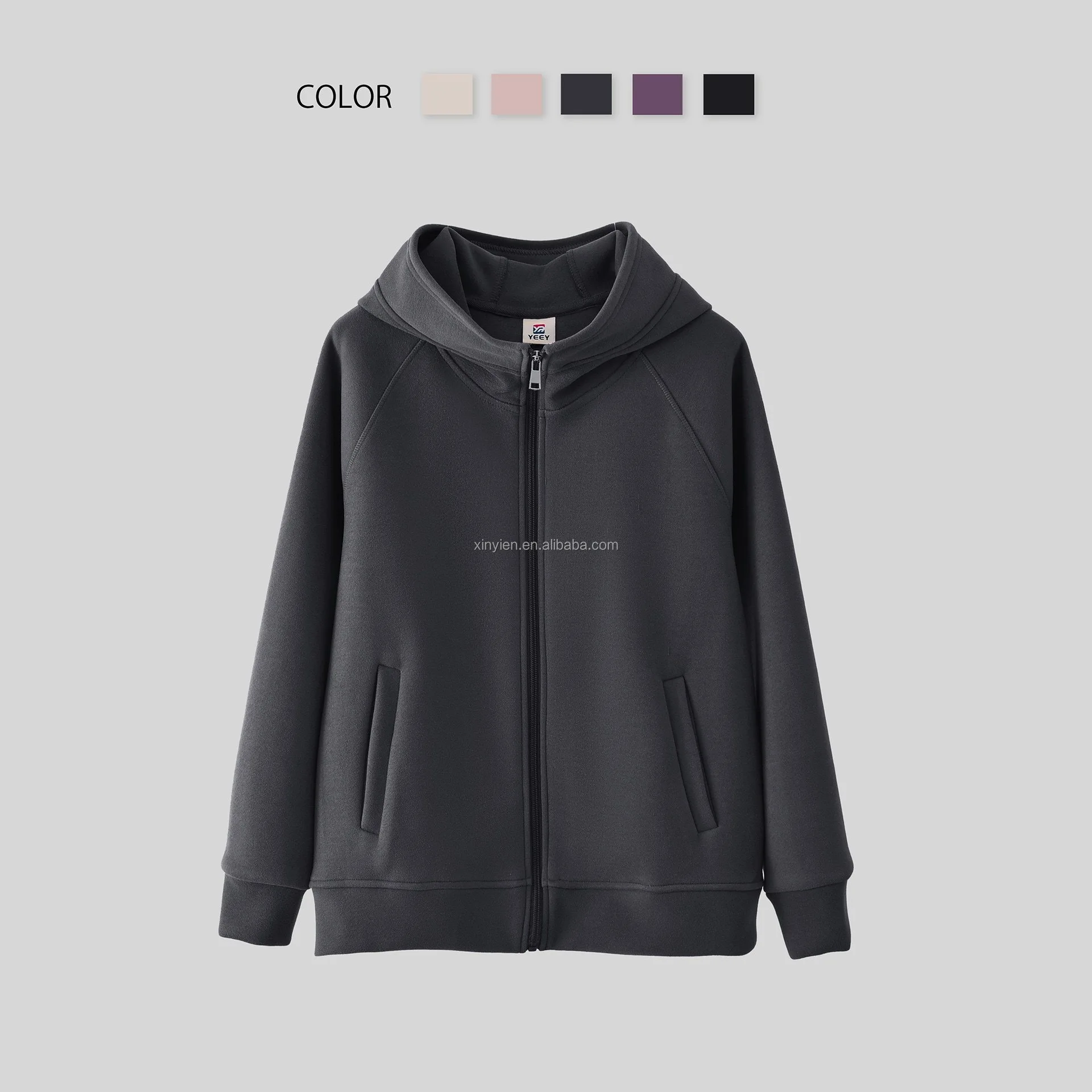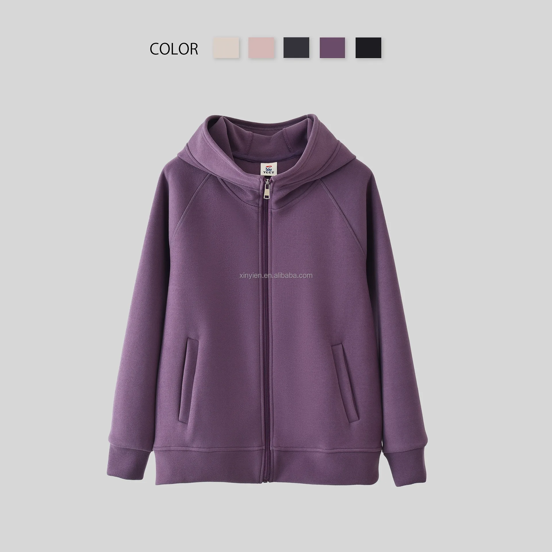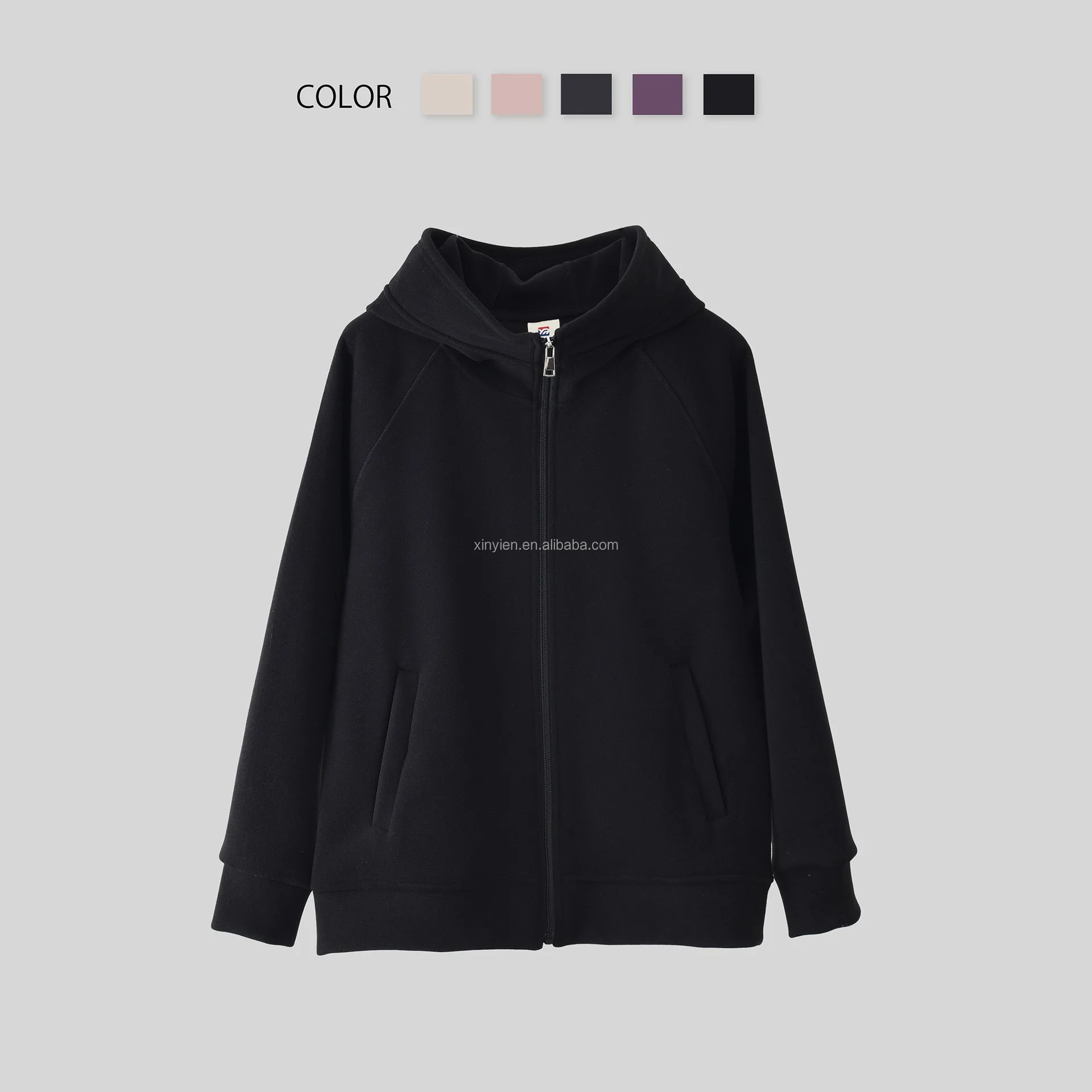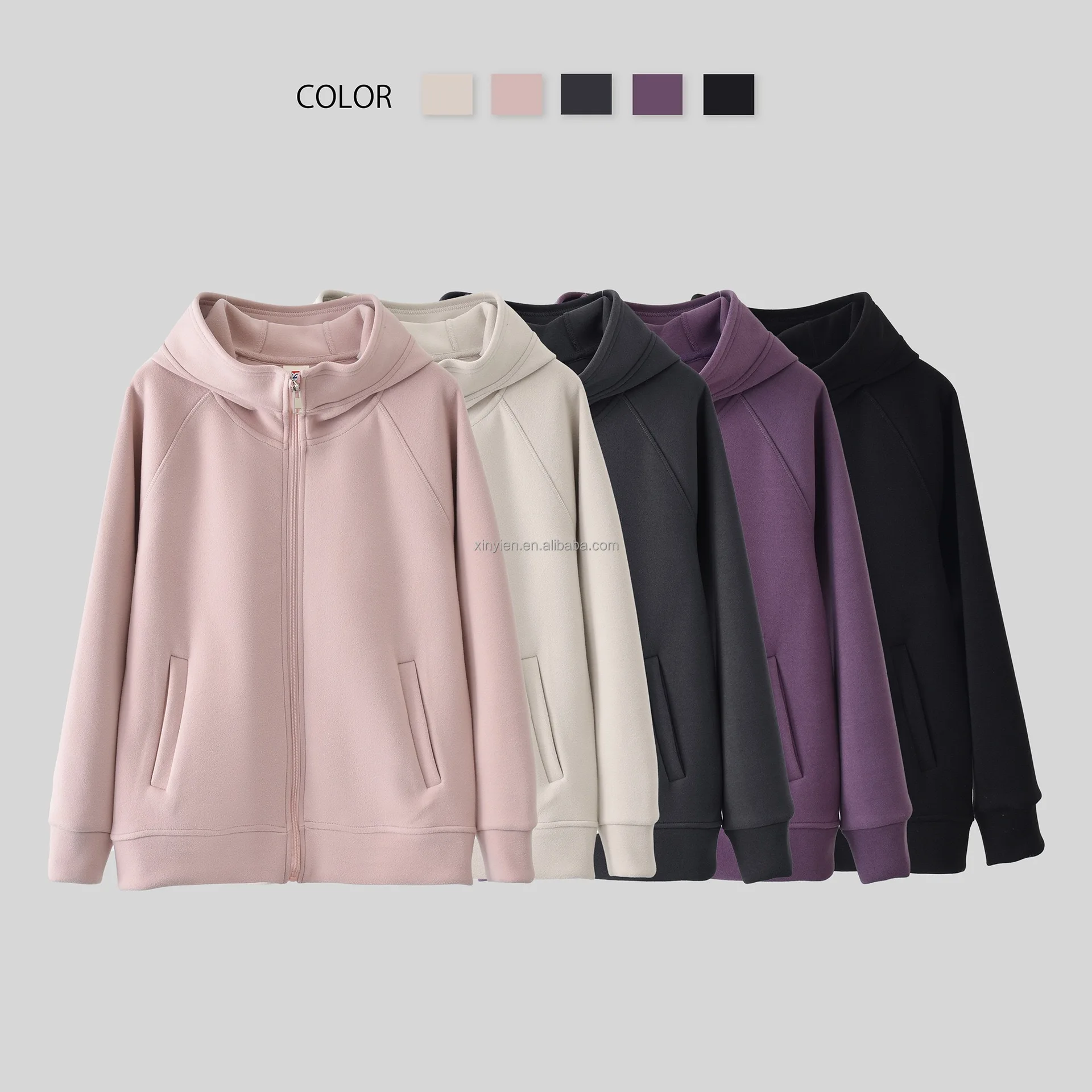 De Velvet Autumn Winter Warm Windproof Coat Ladies Solid Color Allin-one Hooded Zipper Cardigan Top Plus Fleece Thickened Hoodie