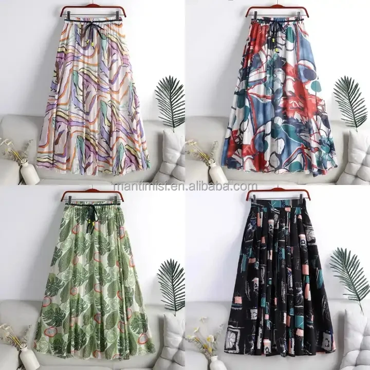 Women's Chiffon Elastic High Waist Pleated A-Line Flared Maxi Skirts