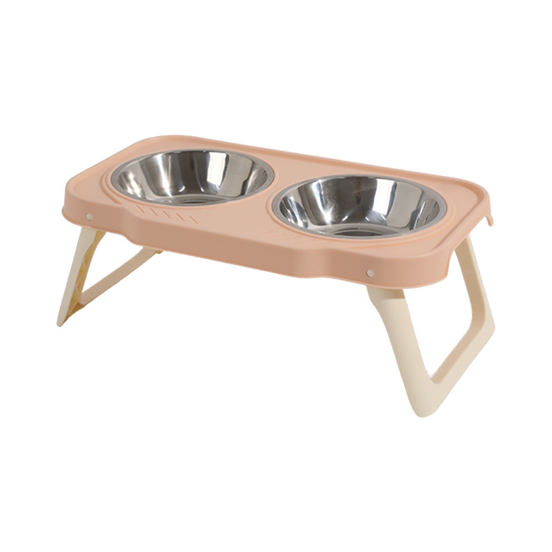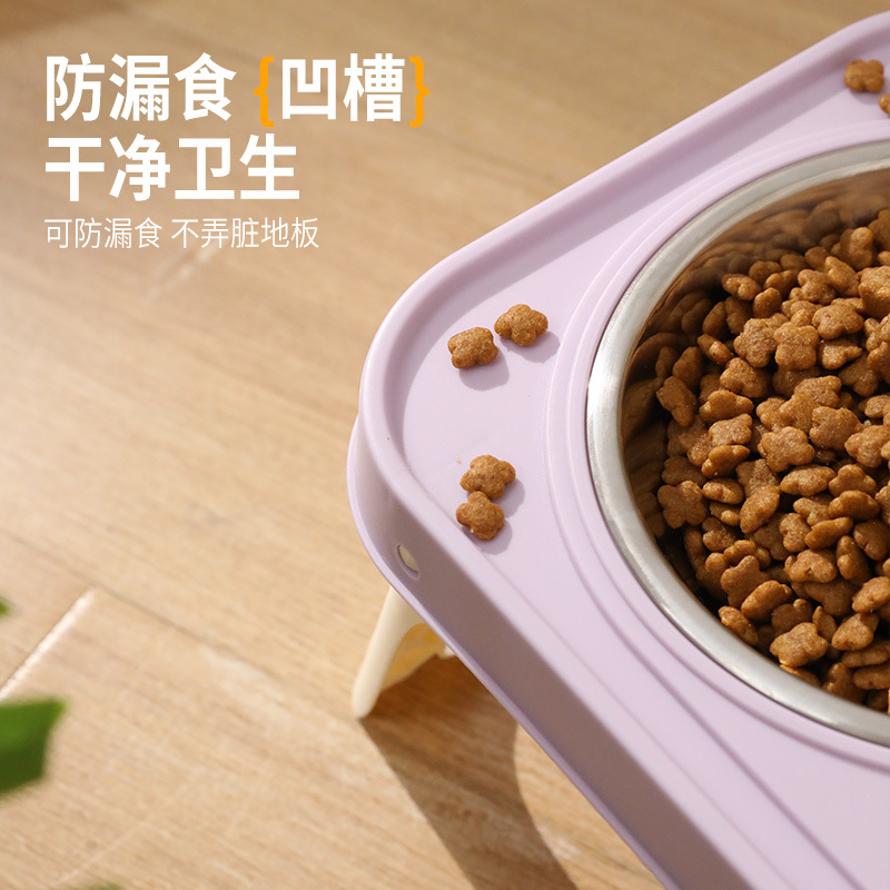 bowl high foot folding double bowl anti-tumble water grain integrated stainless steel dog bowl protection cervical spine dogs and cats water grain bowl