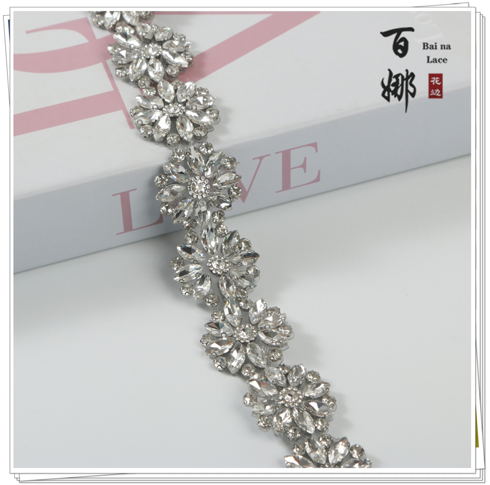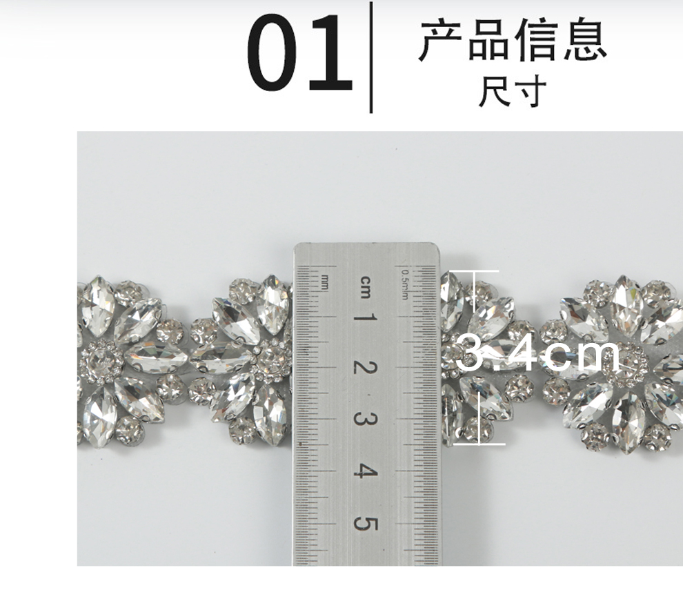 Product Name: BJ004 Water-Abrasion Diamond Barcode Chain with Fancy Hot-Melt Backing Glass Diamond Chain Looming Belt DIY Clothing Collar Decorative Accessory