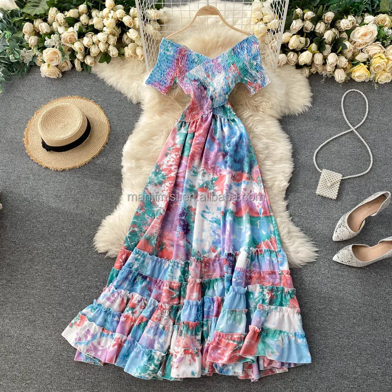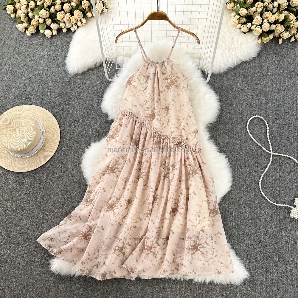Womens Summer Dresses 2025 Boho Floral Maxi Sun Dress Halter Neck Flowy Party Prom Dresses for Women