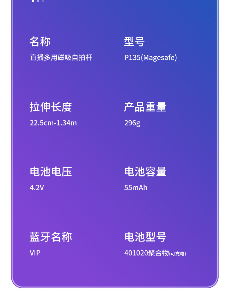 Customized P135 Magnetic Selfie Stick with MagSafe Bluetooth Remote Control for Long-Distance Phone Photography