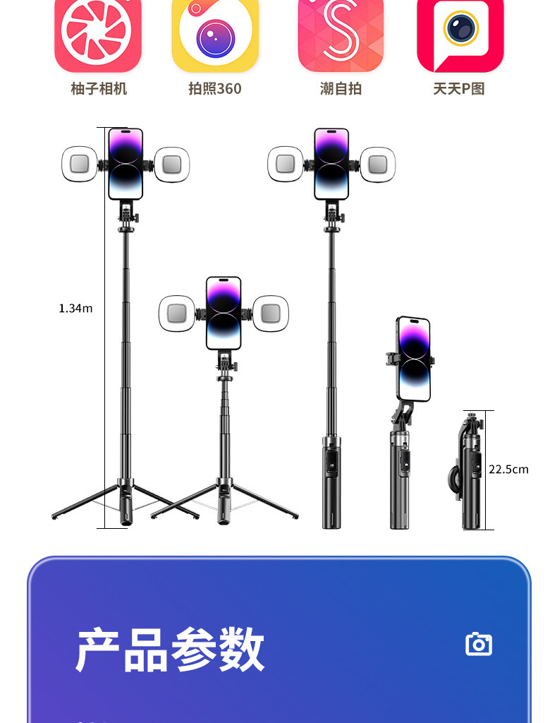 p135magsafe magnetic selfie stick/white double light