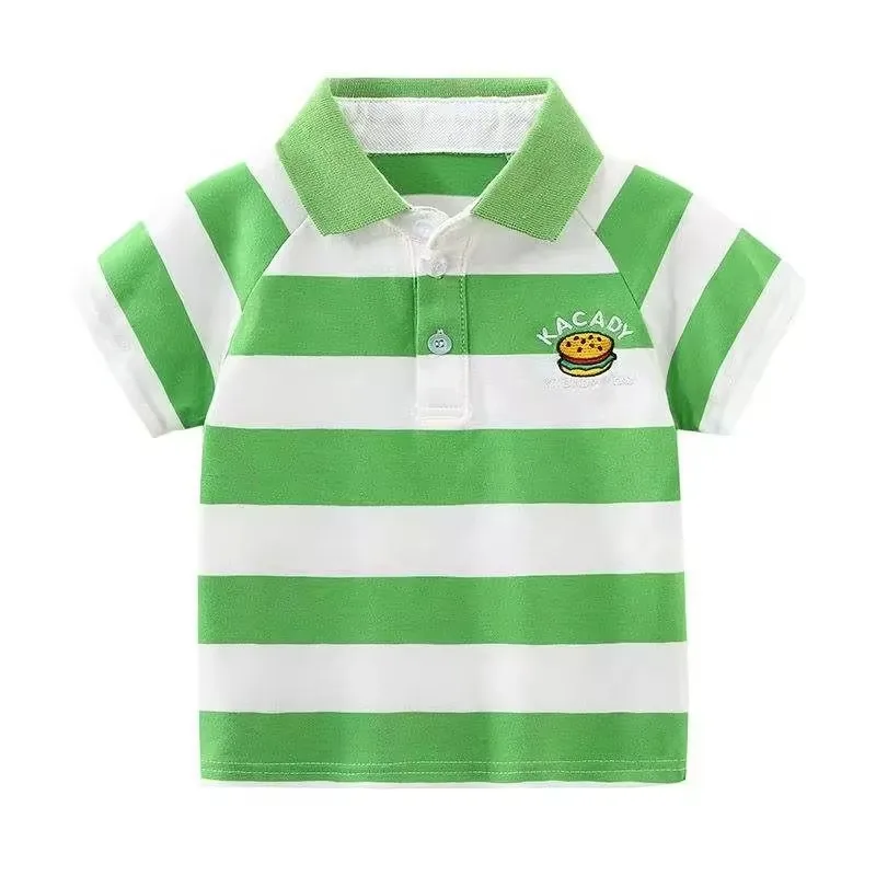 1.The "Baby Fashion Polo T Shirt Kids Tops Child Wear Make up Wholesale Clothes Boys Polo Shirts" product is a striped children's polo shirt designed for boys. It is a smart casual style, suitable for various occasions.