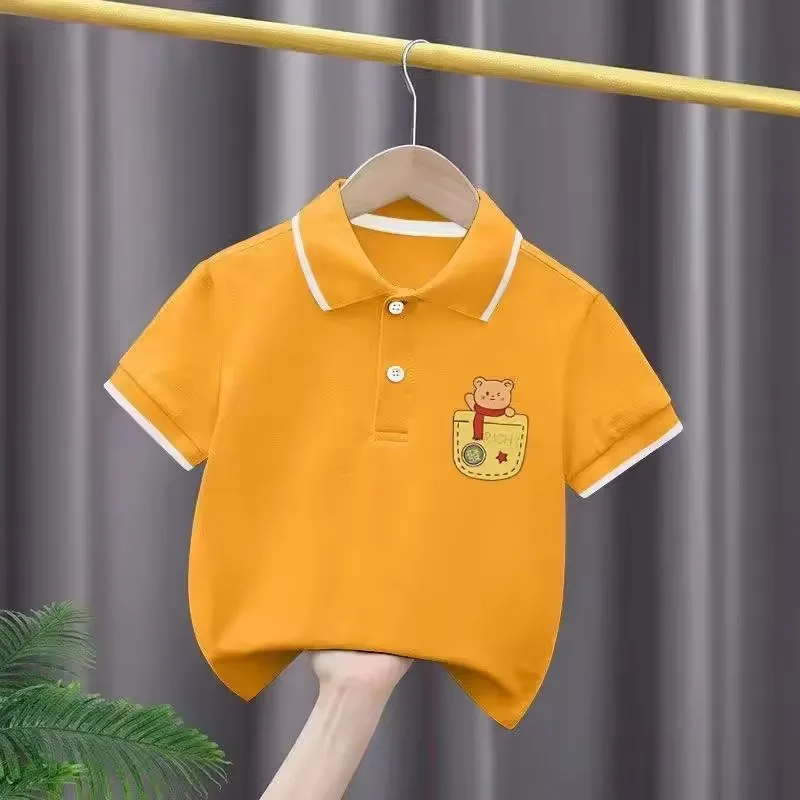 3.Furthermore, the collar of this polo shirt is a classic O-Neck design, while the sleeves are short-sleeved. The pattern is solid, and the shirt is available in various sizes, catering to the needs of different children.