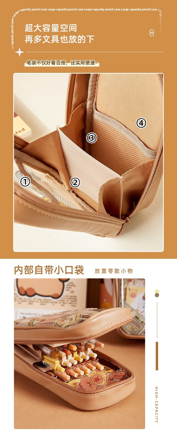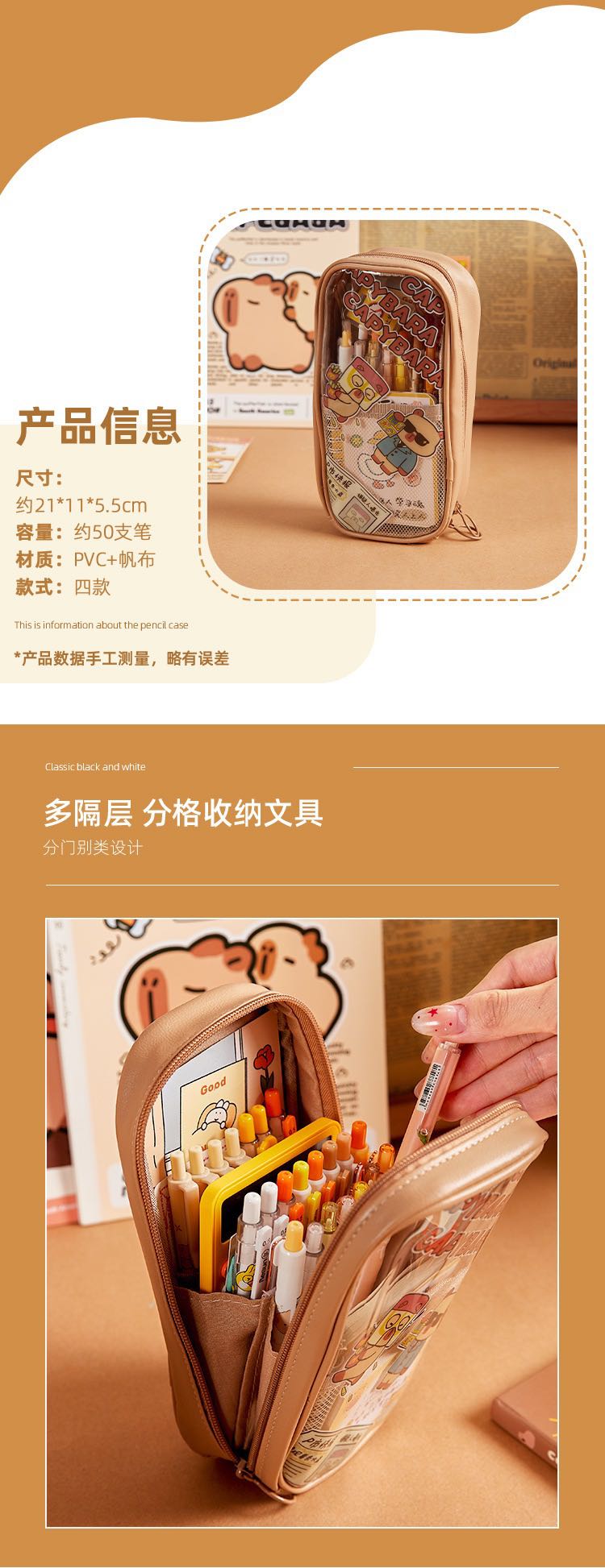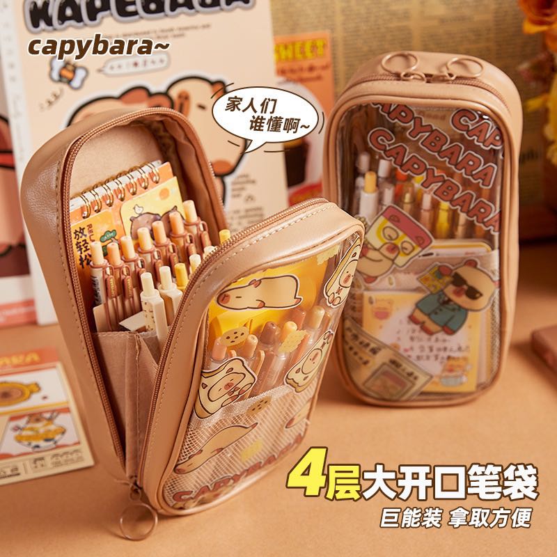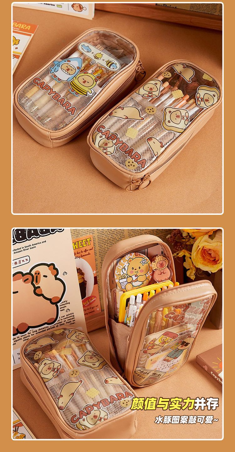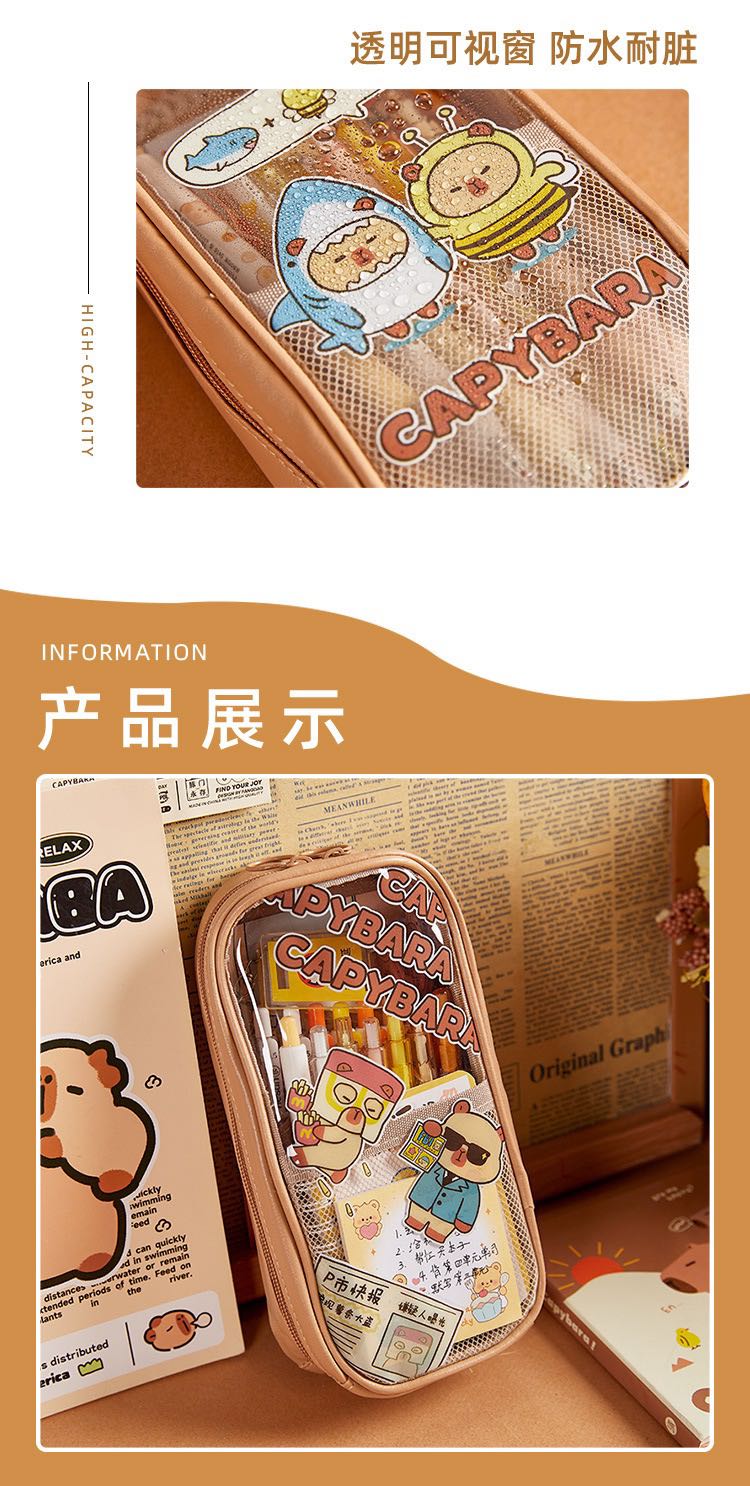 capabala transparent large capacity cute waterproof durable pencil case stationery case stationery box 中文版