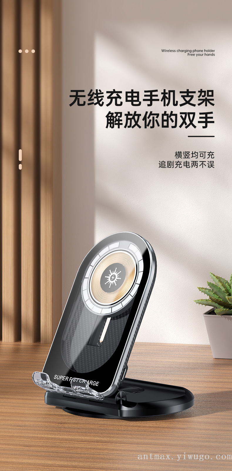 high and low free adjustment mobile phone foldable bracket wireless charger 中文版