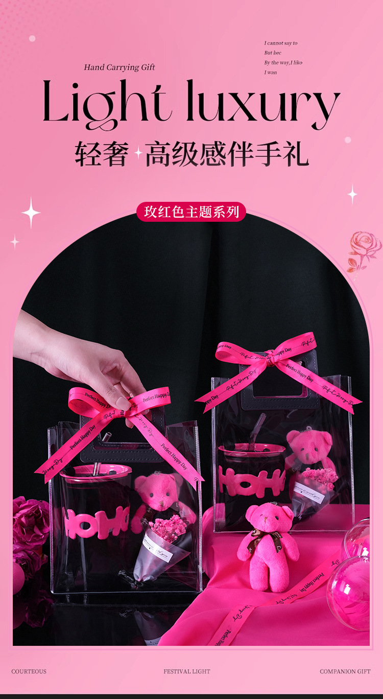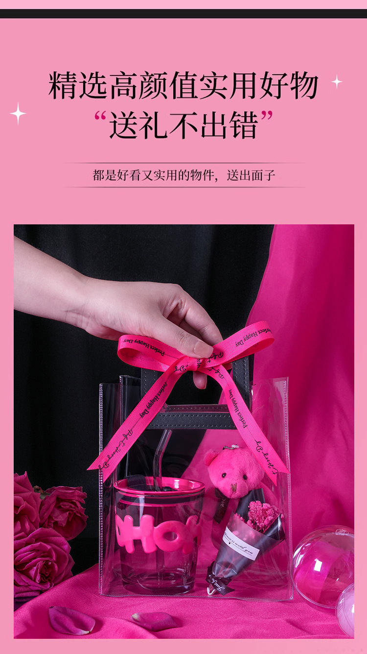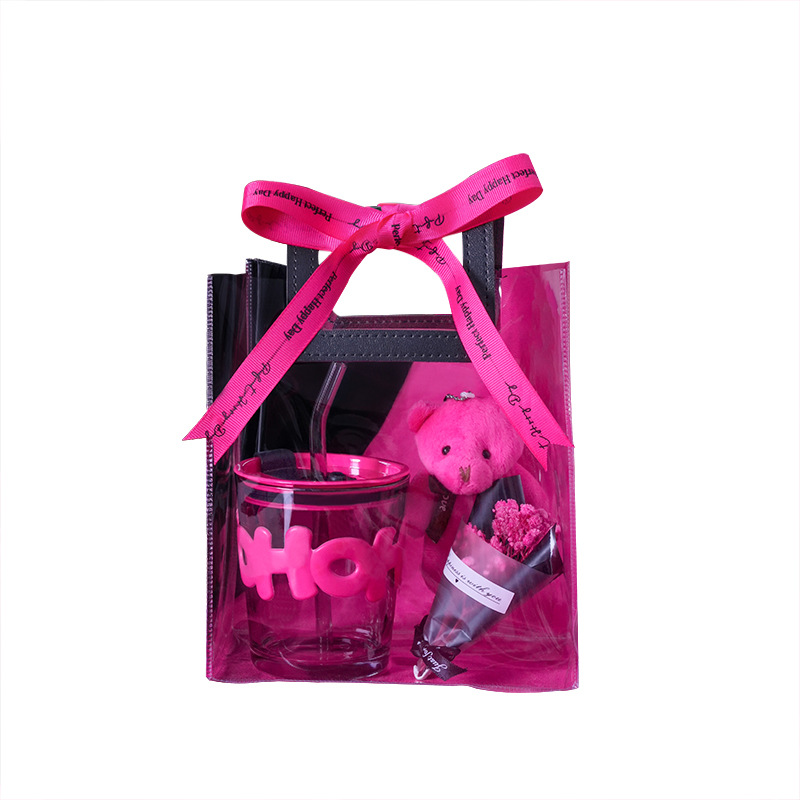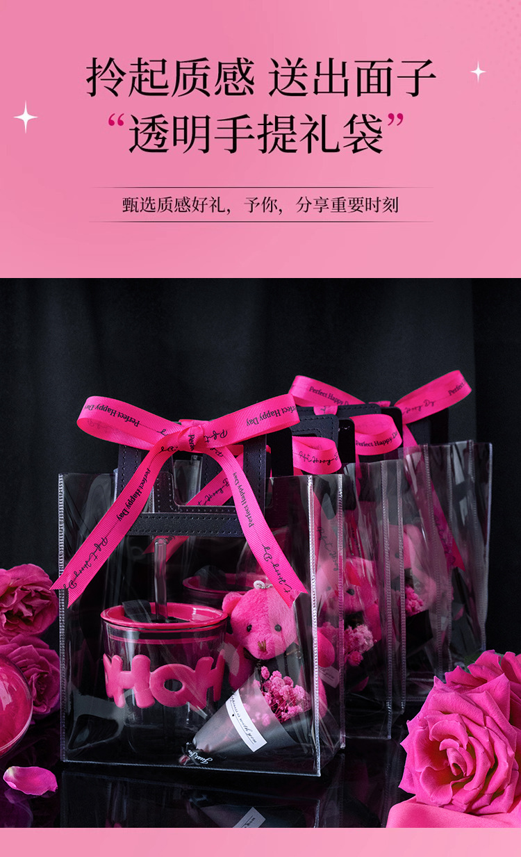alphabet mug bamboo section: black handbag gift bag + rose red bear + rose red small flower + rose red ribbon