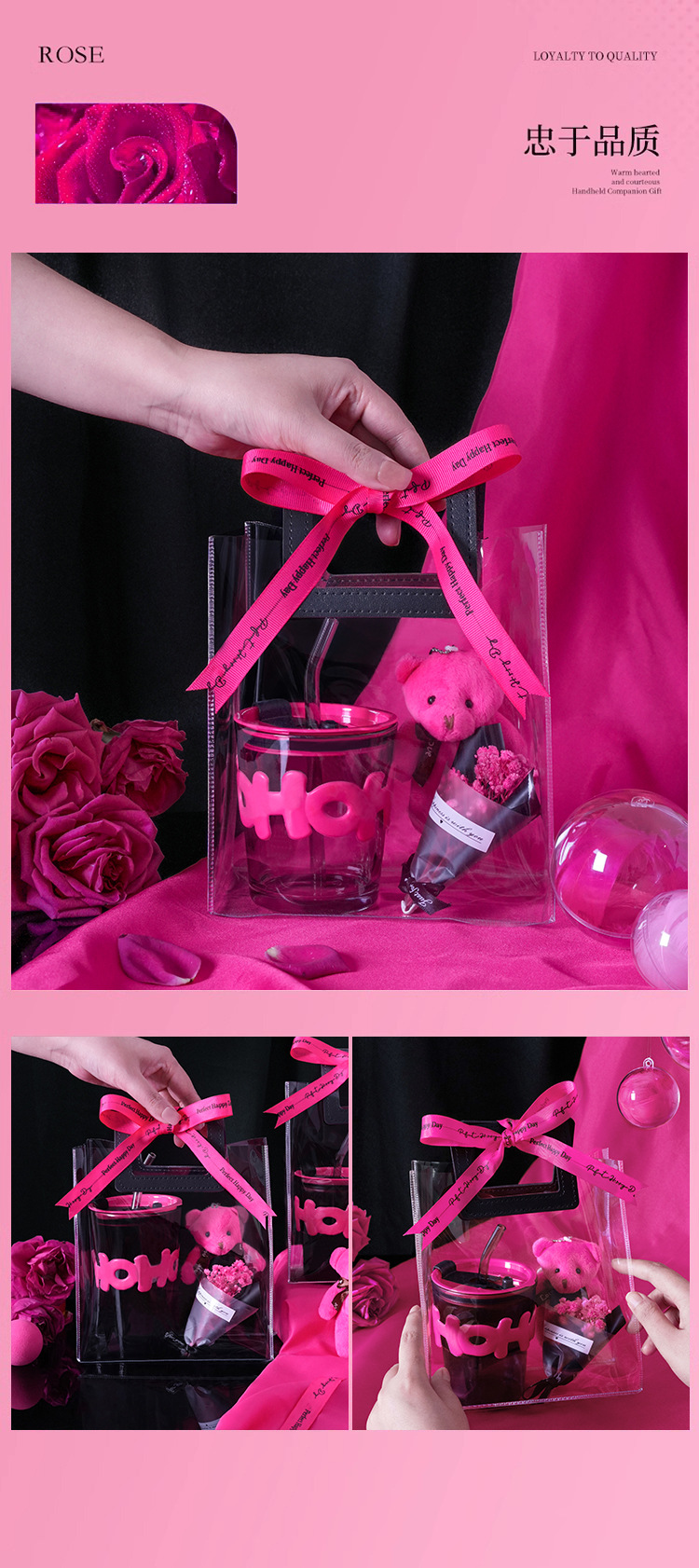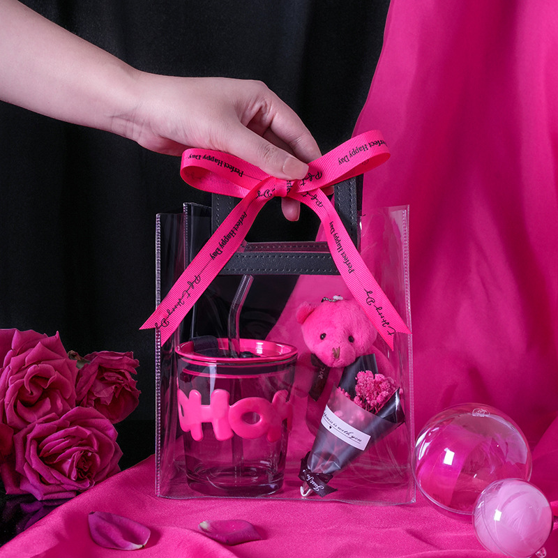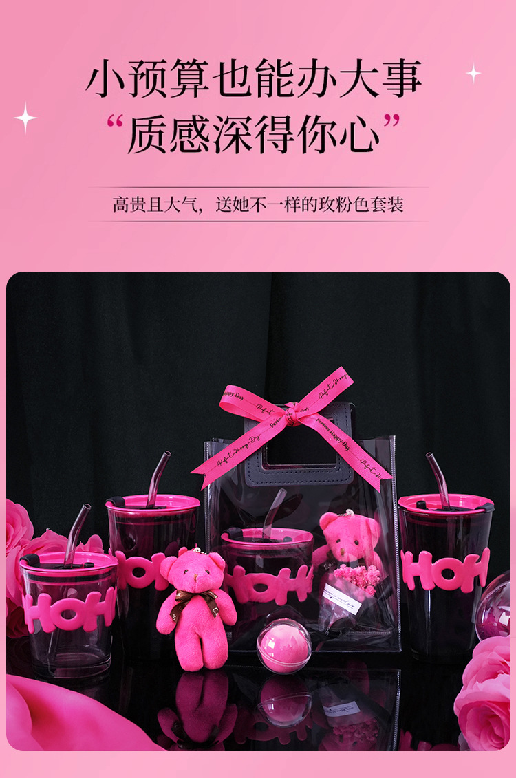 alphabet mug bamboo section: black handbag gift bag + rose red bear + rose red small flower + rose red ribbon